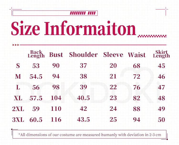 Please read the size chart carefully. (◕ˇ∀ˇ◕)Welcome contact us for help about size choosing with your height ,weight ,waist ,bust,hip measurement.
