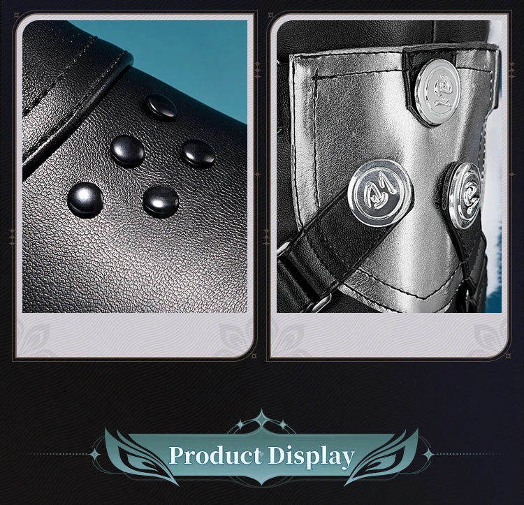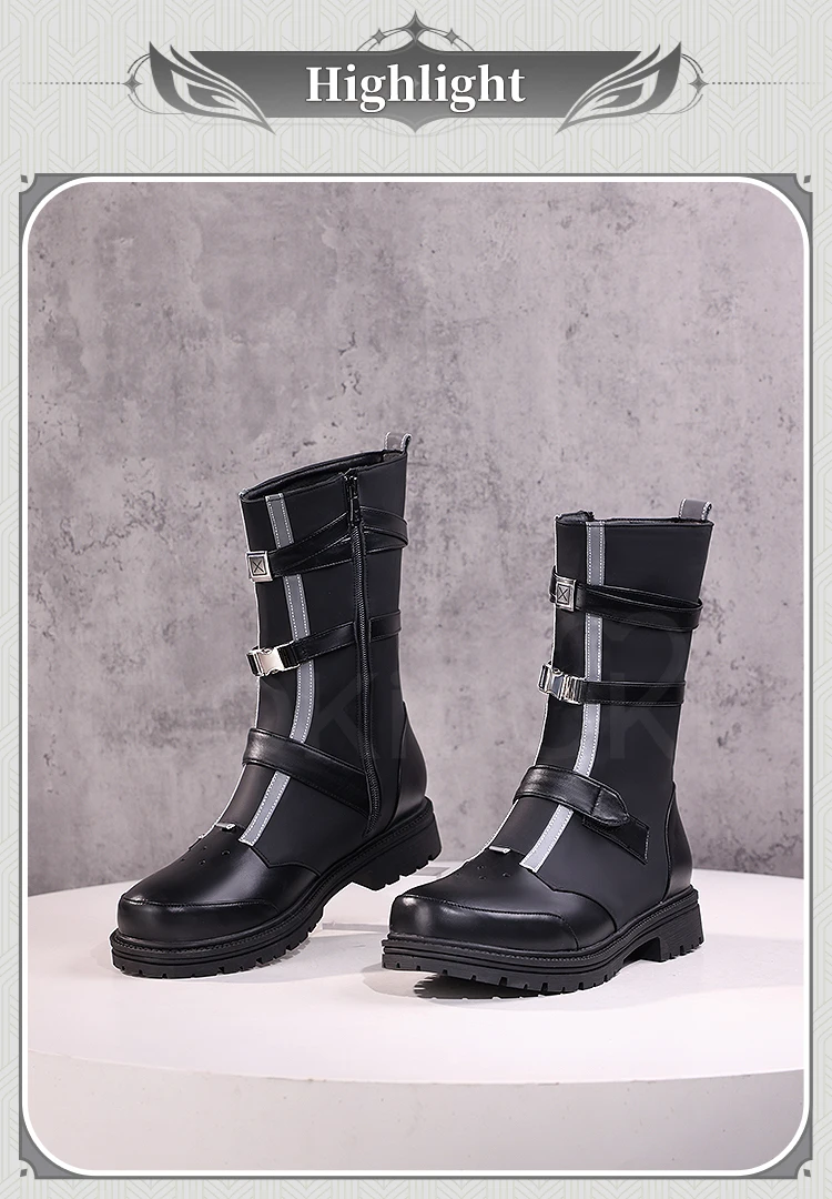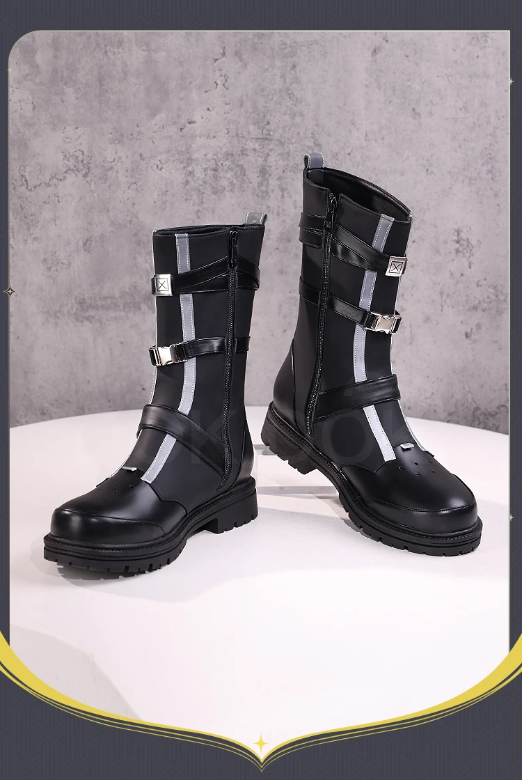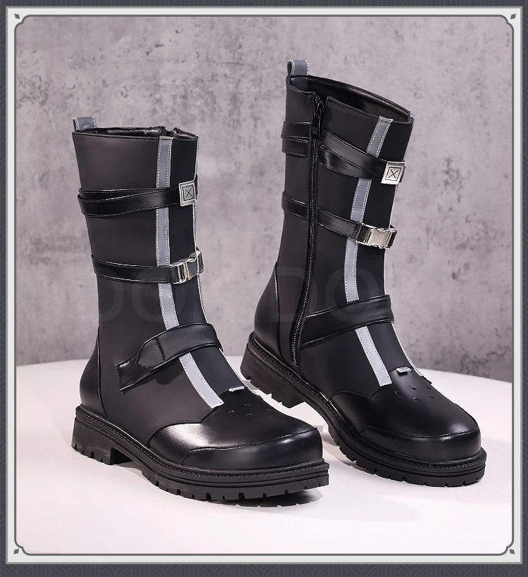 IN STOCK Rover Qiuyuan Cosplay Shoes Game Wuthering Waves DokiDoki-SR Black Leather Shoes Rover Cosplay Men Christmas Long Boots