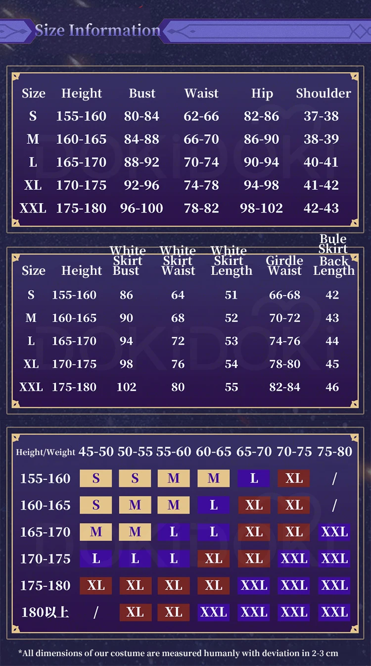 Please read the size chart carefully. (◕ˇ∀ˇ◕)Welcome contact us for help about size choosing with your height ,weight ,waist ,bust,hip measurement.