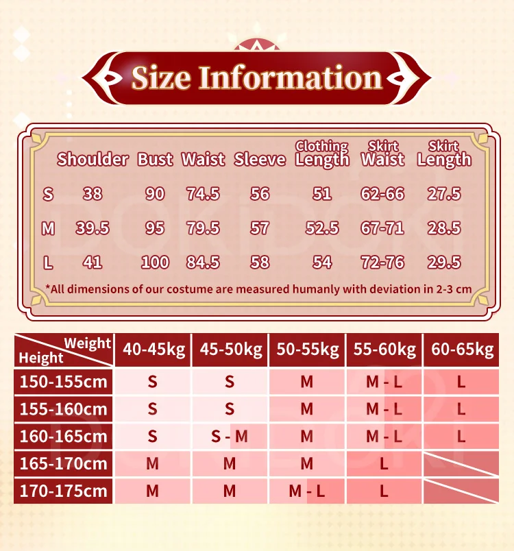 Please read the size chart carefully. (◕ˇ∀ˇ◕)Welcome contact us for help about size choosing with your height ,weight ,waist ,bust,hip measurement.