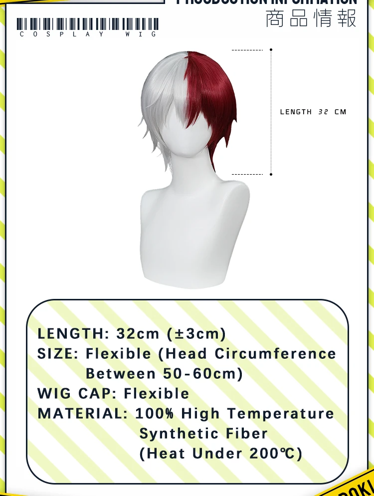 IN STOCK Todorokii Shotoo Wig Anime Cosplay DokiDoki Todorokii Shotoo Cosplay Men 32cm Red White Hair Heat Resistant Free Cap