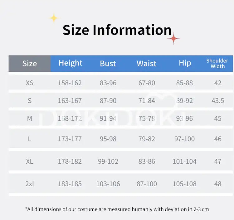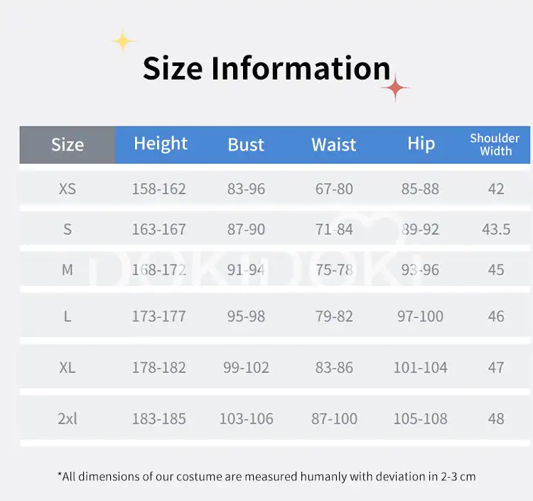 Please read the size chart carefully. (◕ˇ∀ˇ◕)Welcome contact us for help about size choosing with your height ,weight ,waist ,bust,hip measurement.