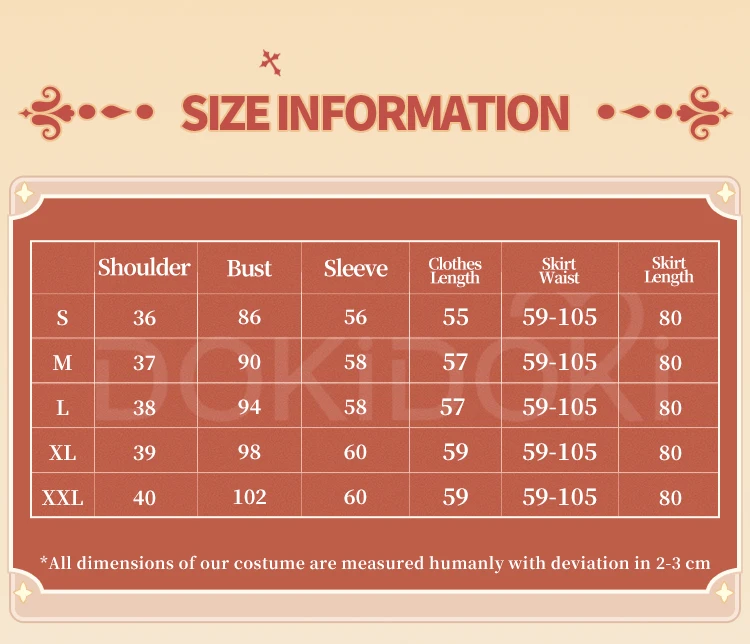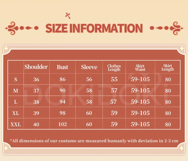 Please read the size chart carefully. (◕ˇ∀ˇ◕)Welcome contact us for help about size choosing with your height ,weight ,waist ,bust,hip measurement.