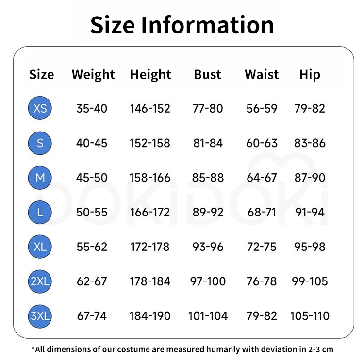 Please read the size chart carefully. (◕ˇ∀ˇ◕)Welcome contact us for help about size choosing with your height ,weight ,waist ,bust,hip measurement.