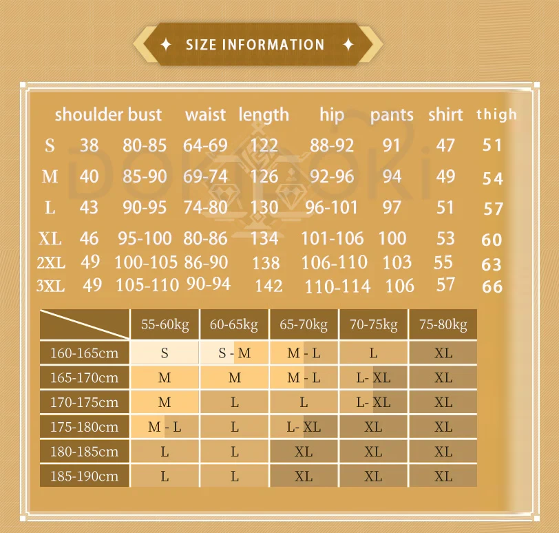Please read the size chart carefully. (◕ˇ∀ˇ◕)Welcome contact us for help about size choosing with your height ,weight ,waist ,bust,hip measurement.