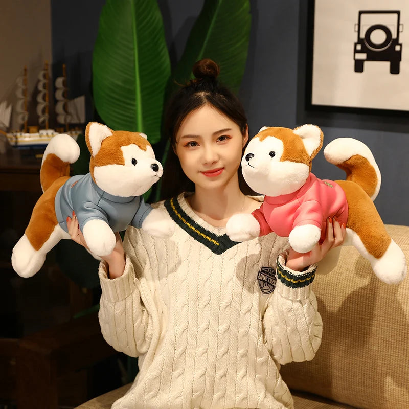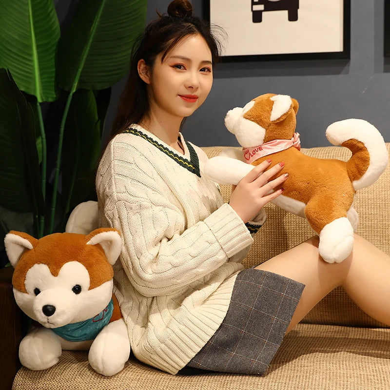 Japan Akita Canis lupus Dog Plush Toy Stuffed Soft Touch Long Plush Lifelike Shiba Inu Dog Doll Birthday Gift for Boy Present