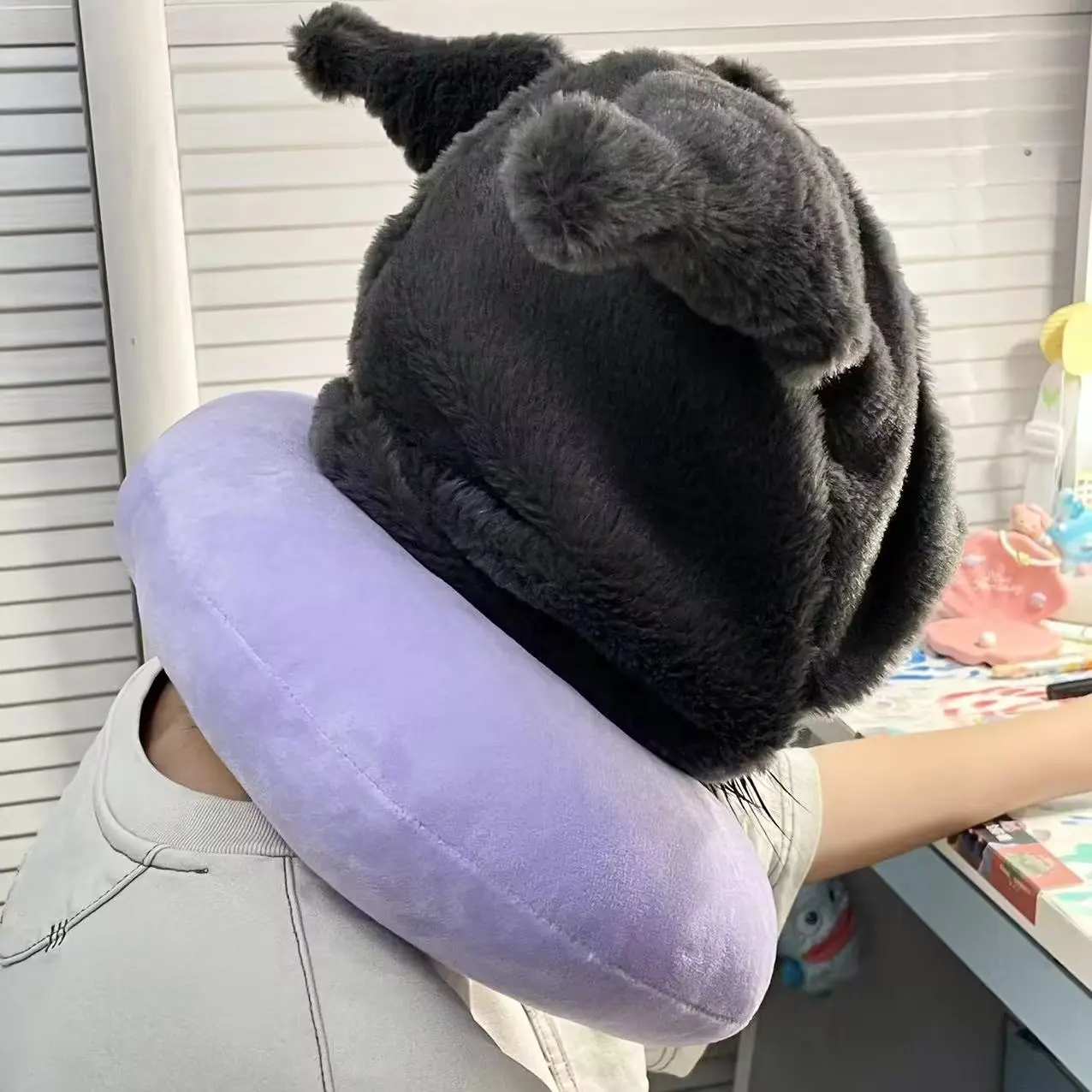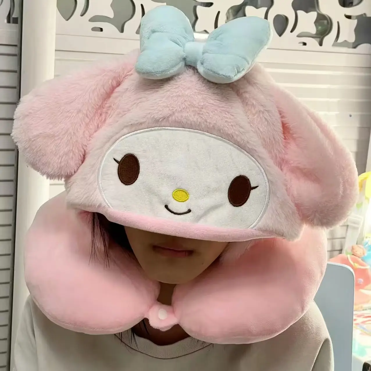 Japanese Anime Kuromi My Melody Hooded U Pillow Soft Pom Pom Purin Pochacco Plush Pillow Animal Cushion Gifts For Girl