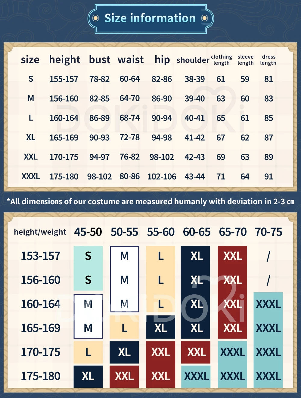 Please read the size chart carefully. (◕ˇ∀ˇ◕)Welcome contact us for help about size choosing with your height ,weight ,waist ,bust,hip measurement.