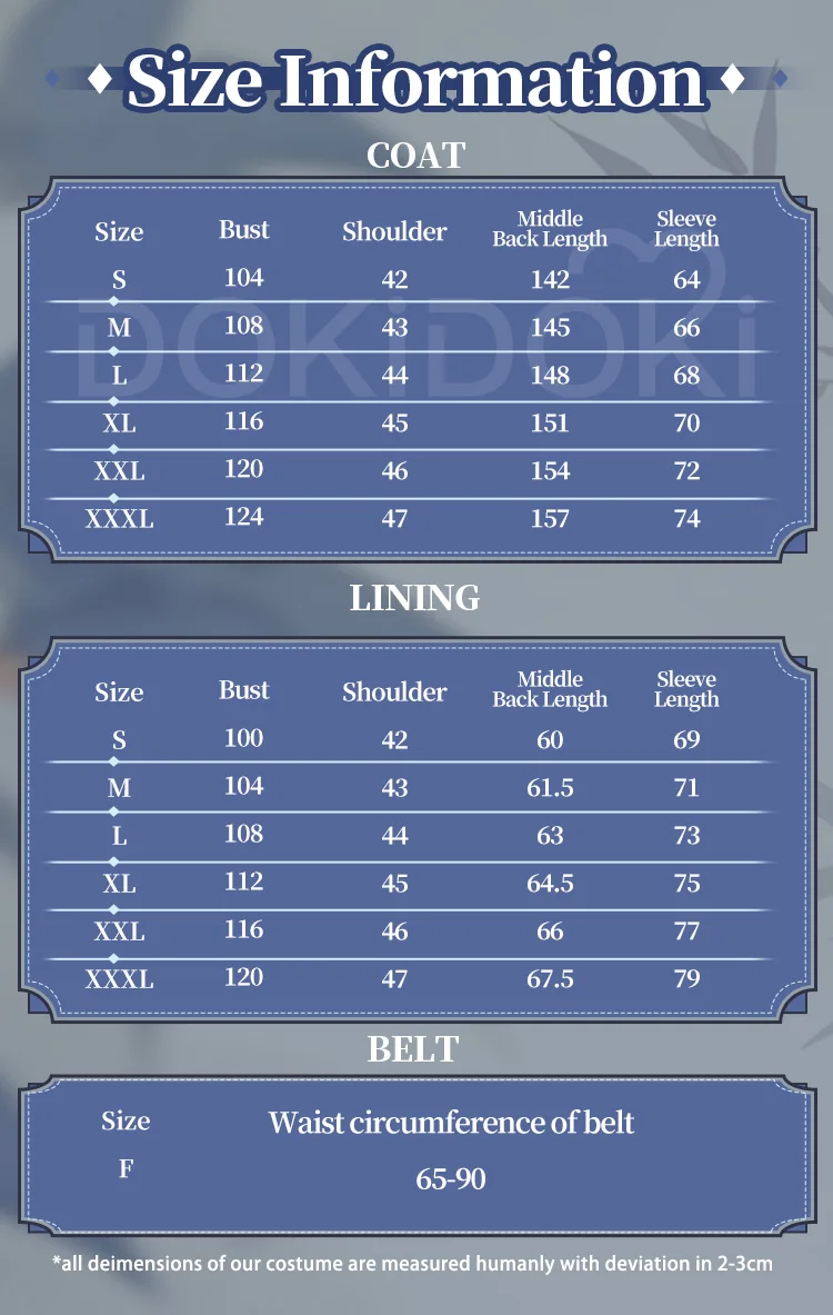 Please read the size chart carefully. (◕ˇ∀ˇ◕)Welcome contact us for help about size choosing with your height ,weight ,waist ,bust,hip measurement.