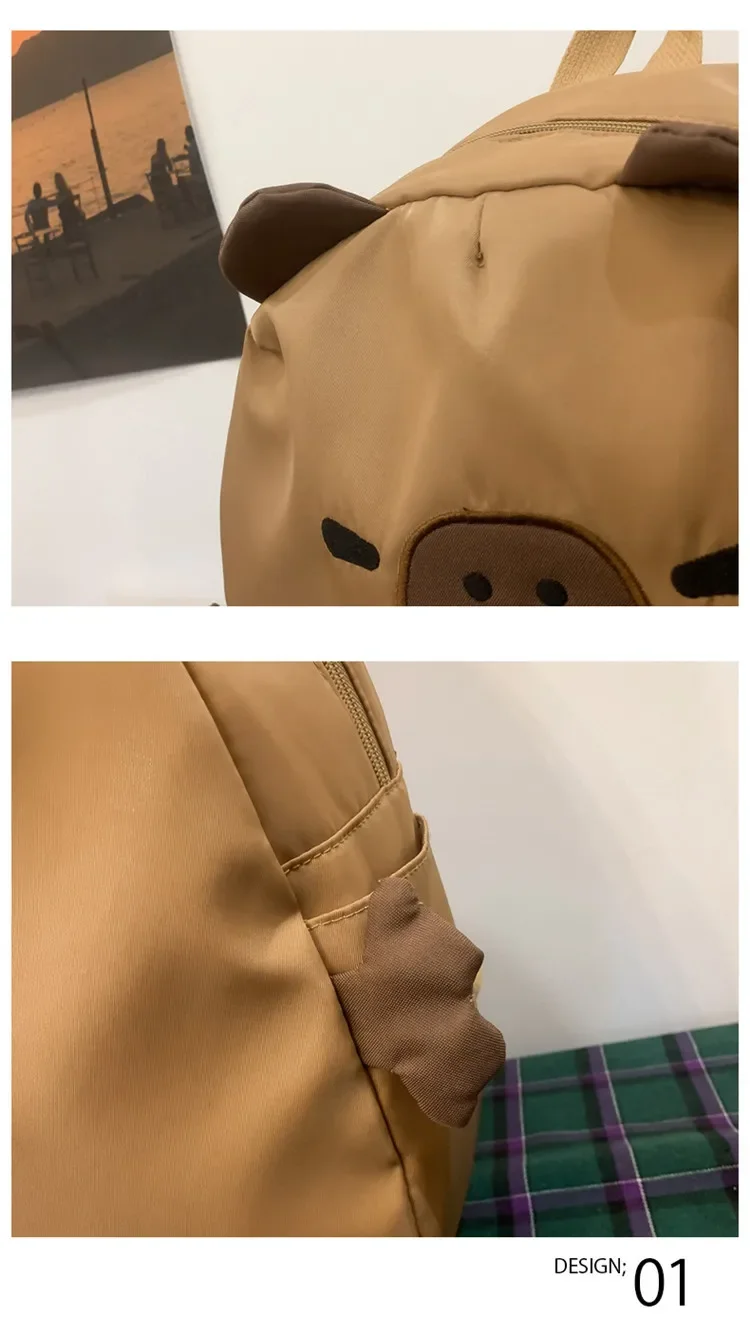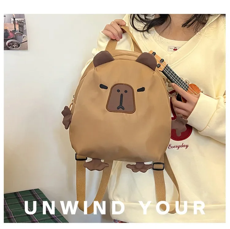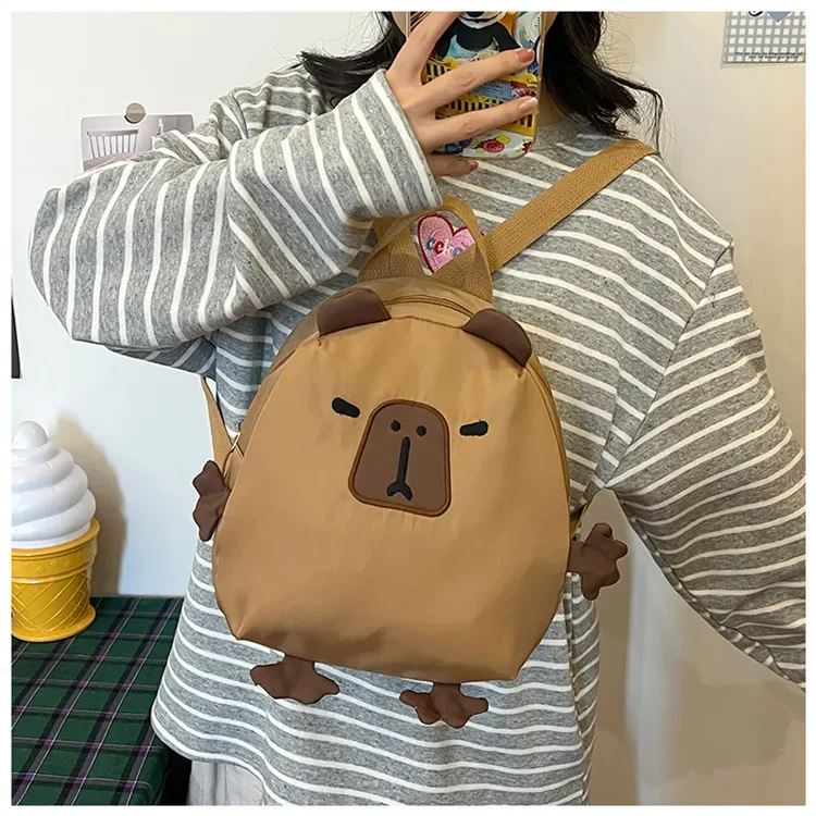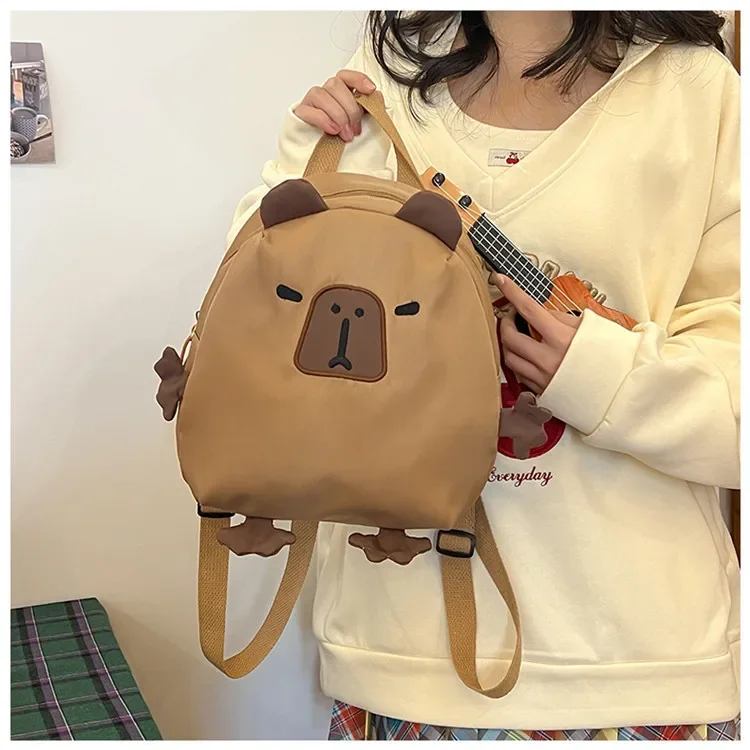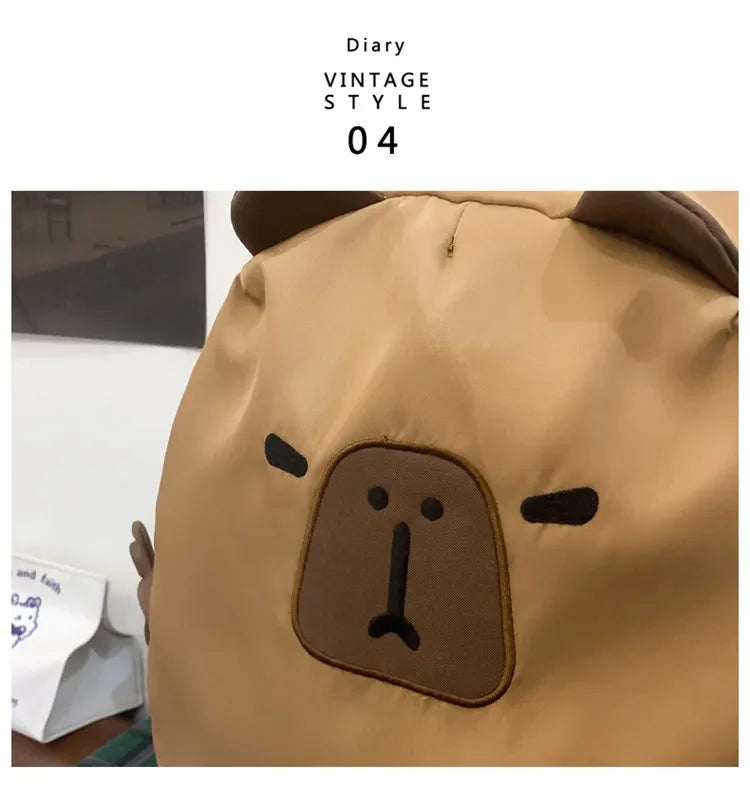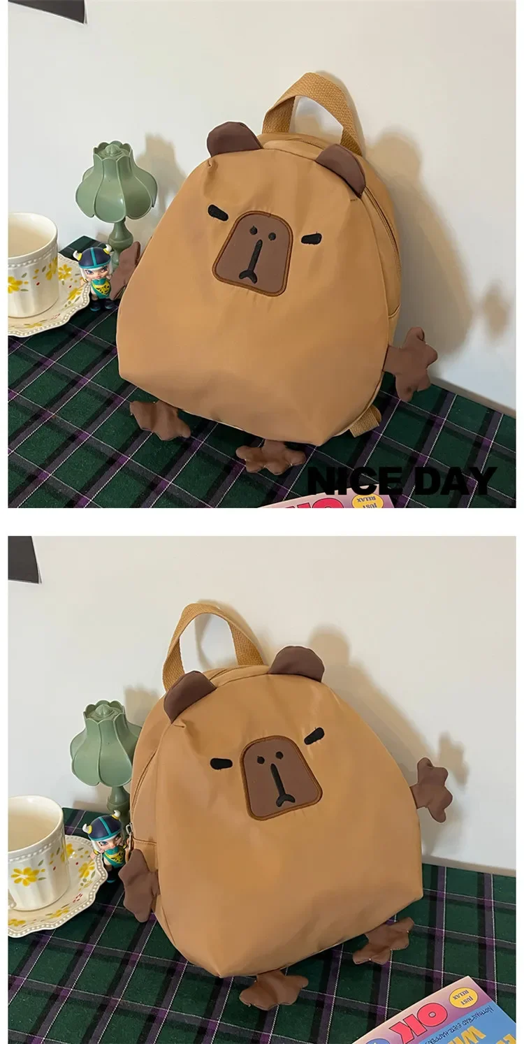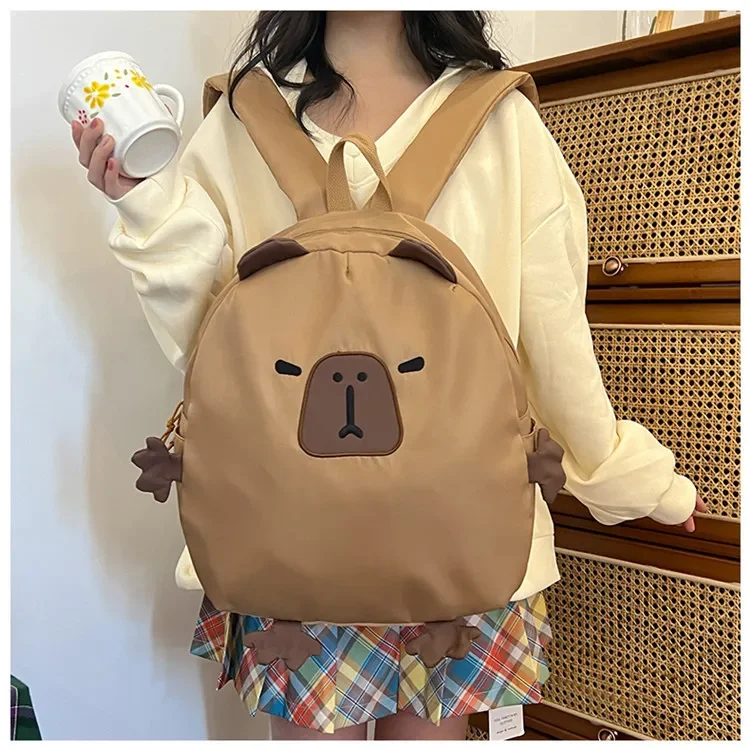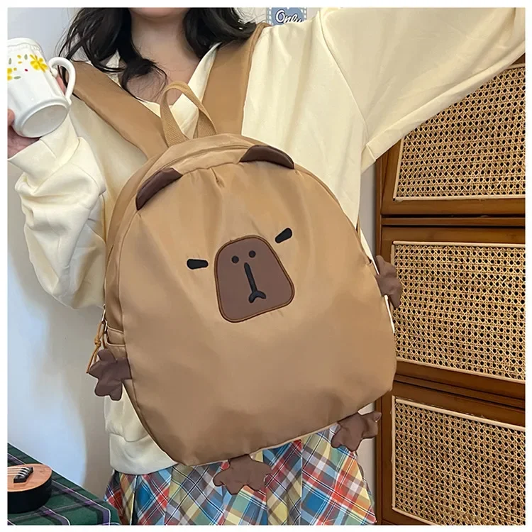 Kawaii Capybara Nylon School Bag Laptop Backpack Cartoon Children's Backpack Travel Casual Book Bags Large Capacity Backpack