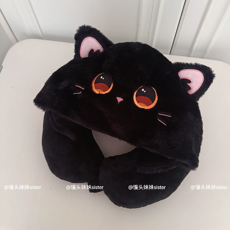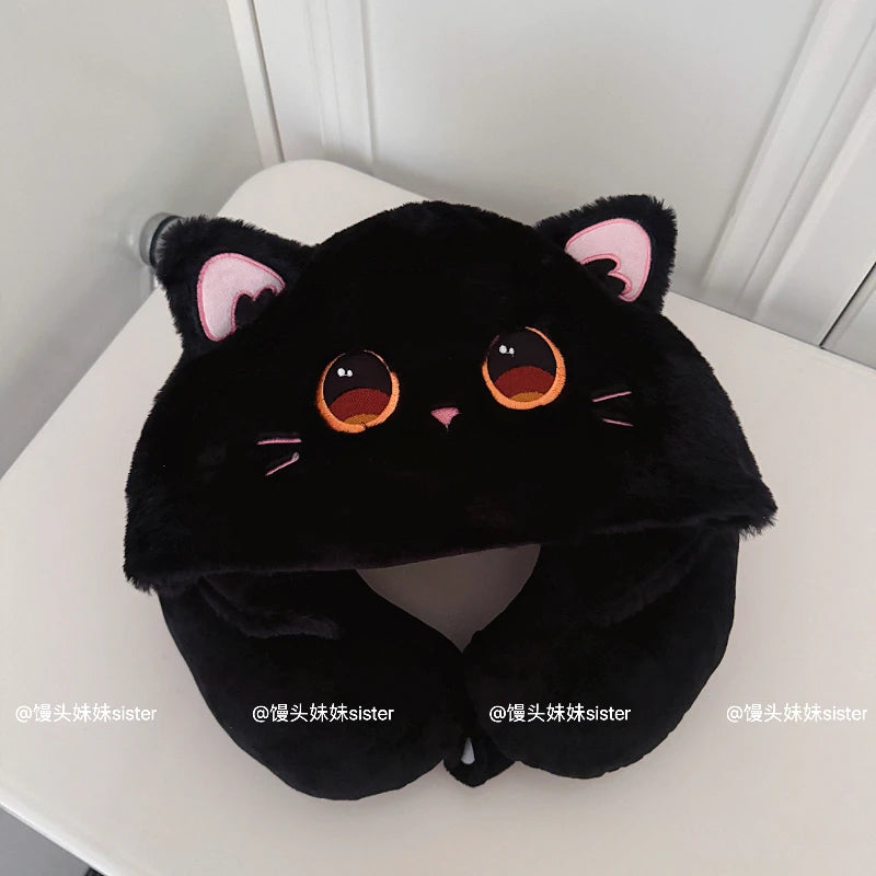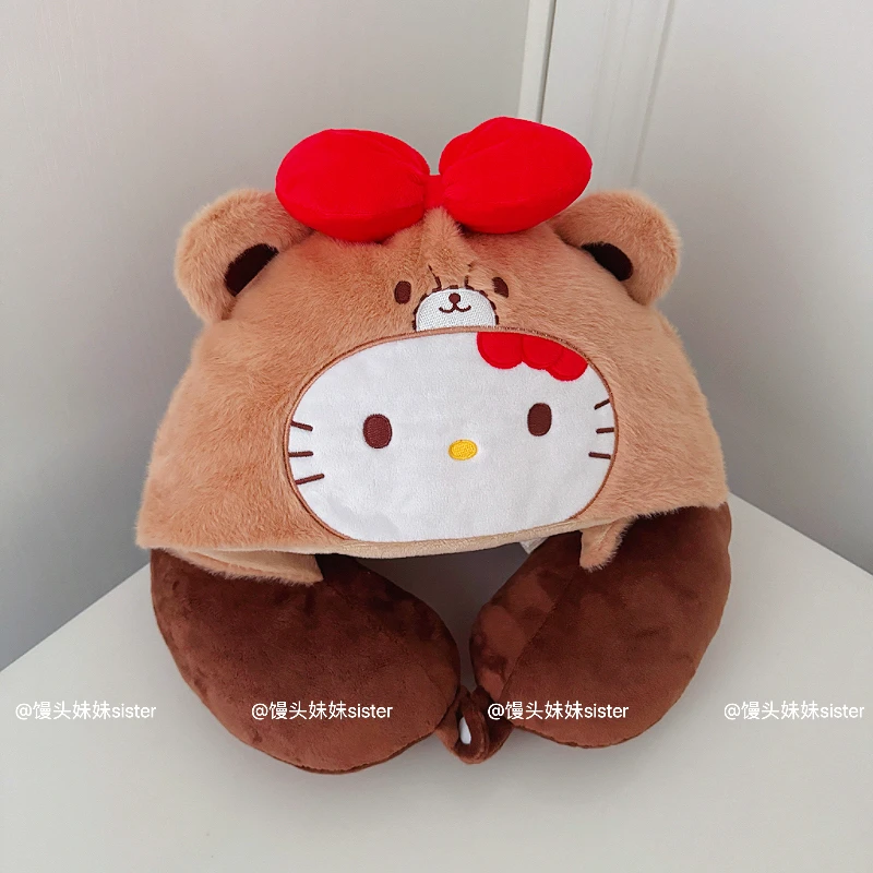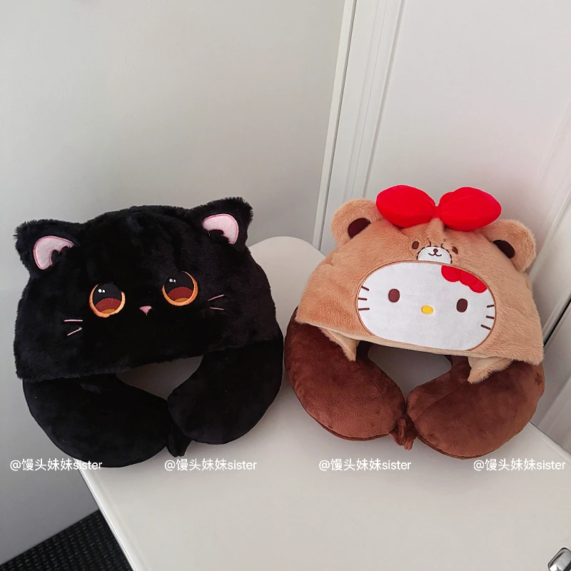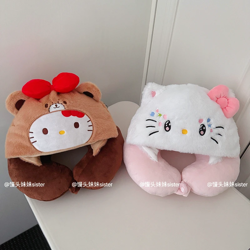 Kawaii Hello Kitty Neck Support Pillow with Hat Soft Plush Travel U-Shaped Pillow Nap Sleeping Cartoon Comfortable Journeys Girl