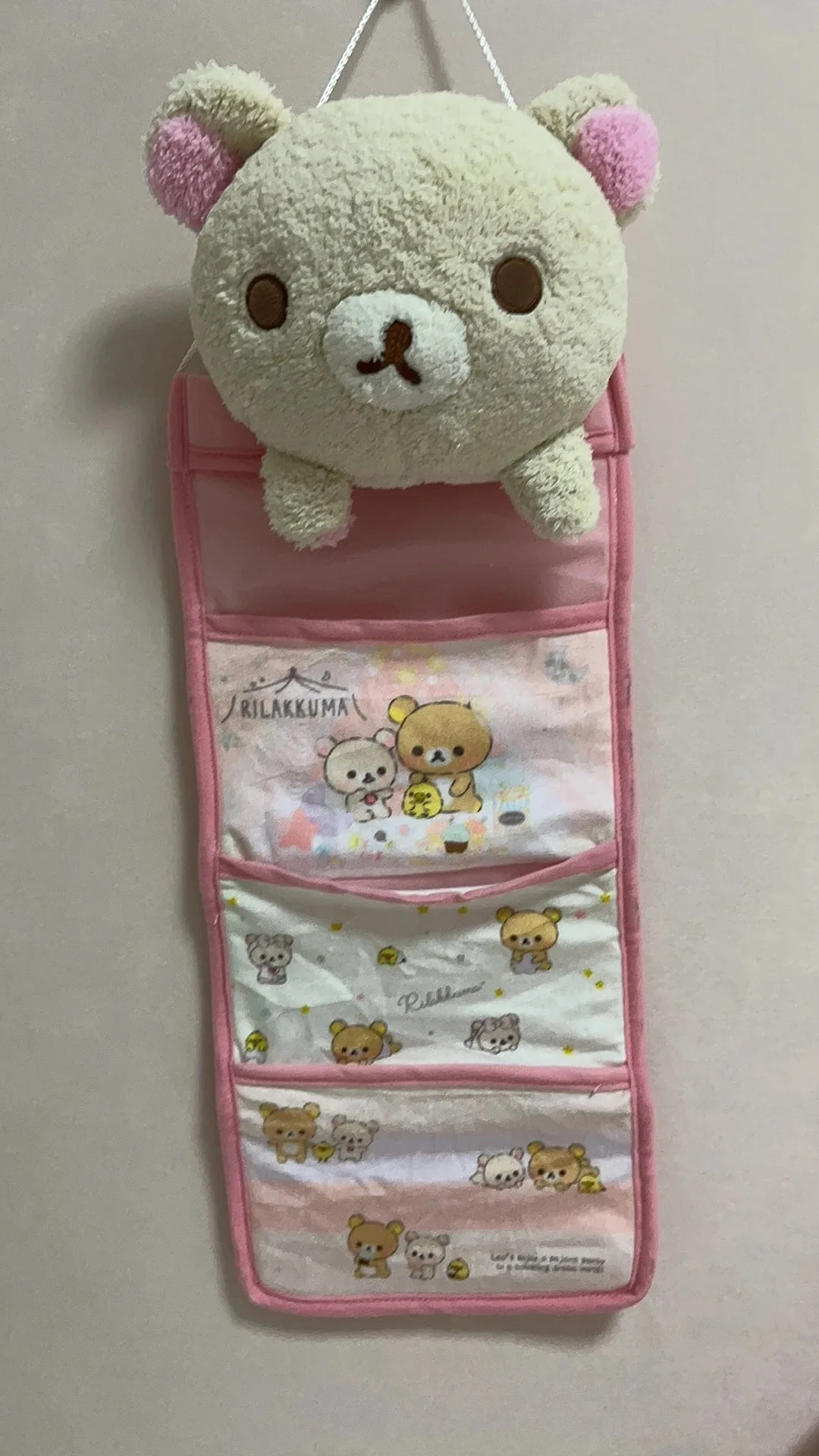 Kawaii Rilakkumas Wall Hanging Storage Bag Cartoon Rilakkumas Bear Door Hanging Bag Large Capacity Sundries Storage Bag Gifts