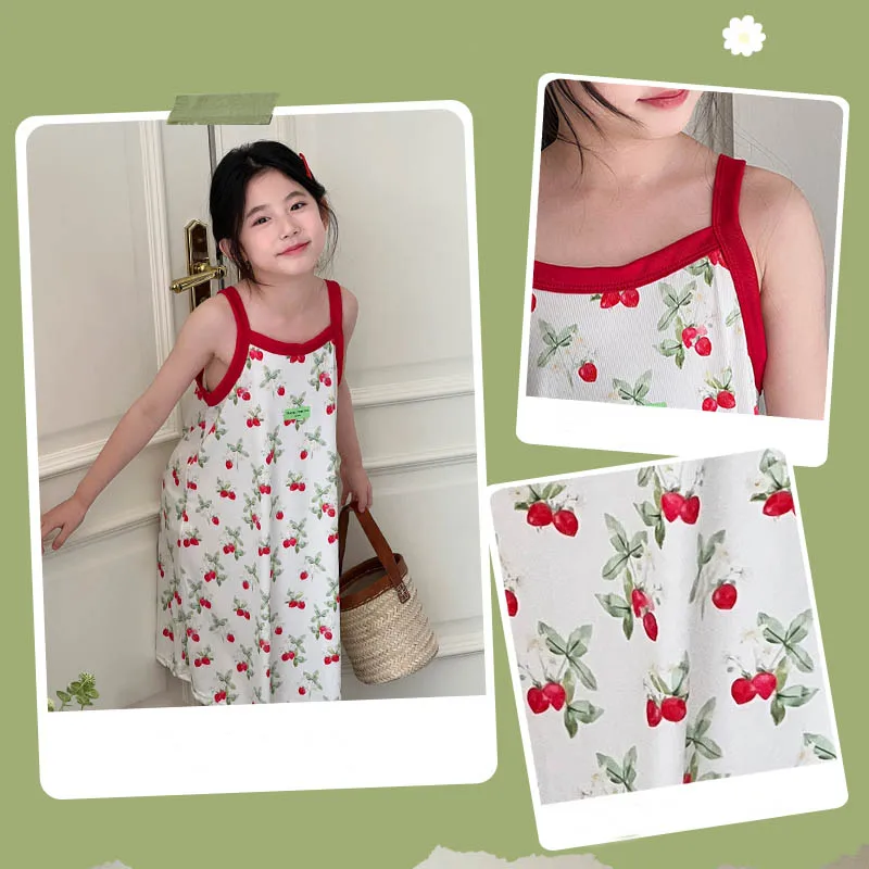 Kids Girls Nightgown Cartoon Nightdress Girl Sleepwear Nightie Summer Sleeveless Floral Print Cats Nightwear Children Clothes