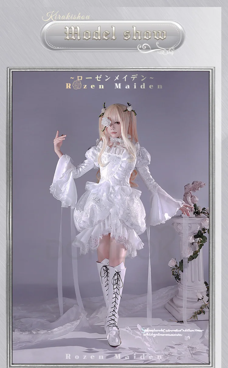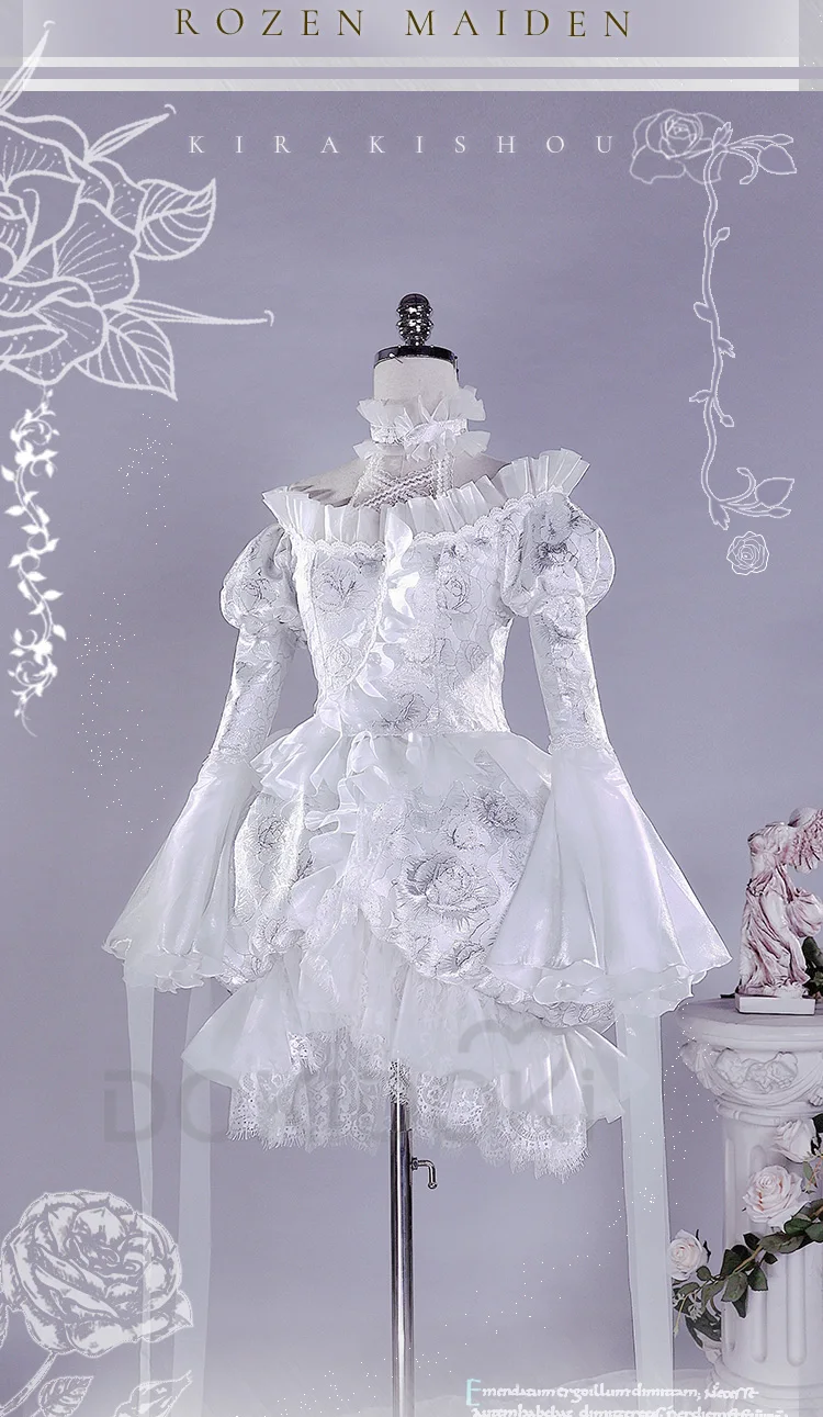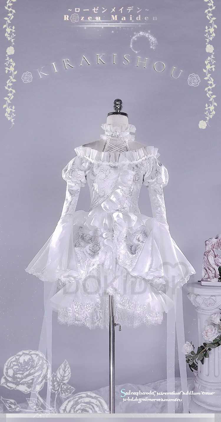 Kirakishou Cosplay Anime Rozen Maiden Cosplay DokiDoki-R Women Kirakishou Cosplay Lolita Gothic Dress White Lolita