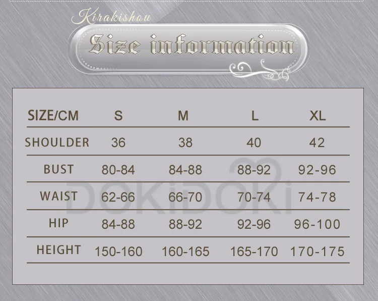 Asian size-Please read the size chart carefully. (◕ˇ∀ˇ◕)Welcome contact us for help about size choosing with your height ,weight ,waist ,bust,hip measurement.