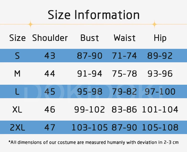 Please read the size chart carefully. (◕ˇ∀ˇ◕)Welcome contact us for help about size choosing with your height ,weight ,waist ,bust,hip measurement.