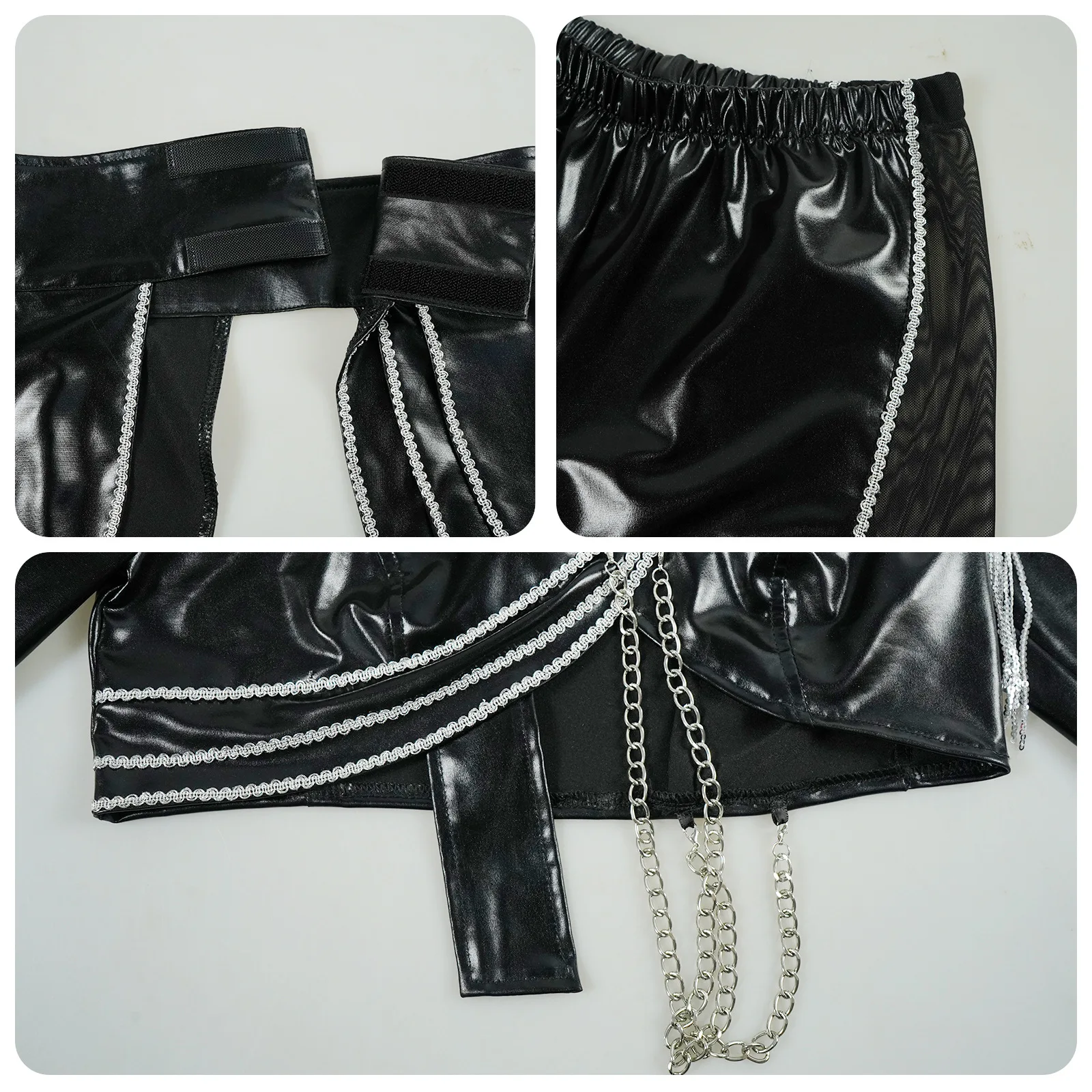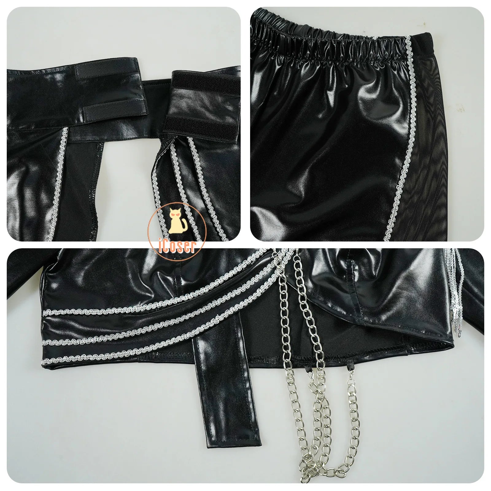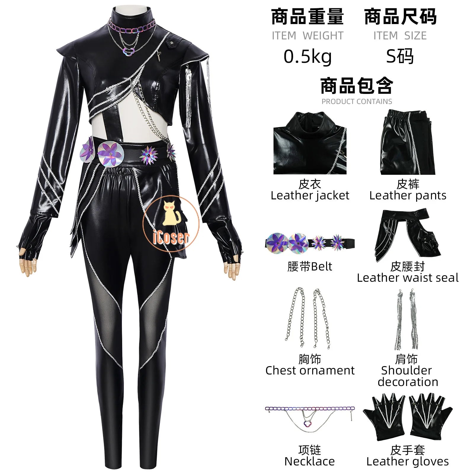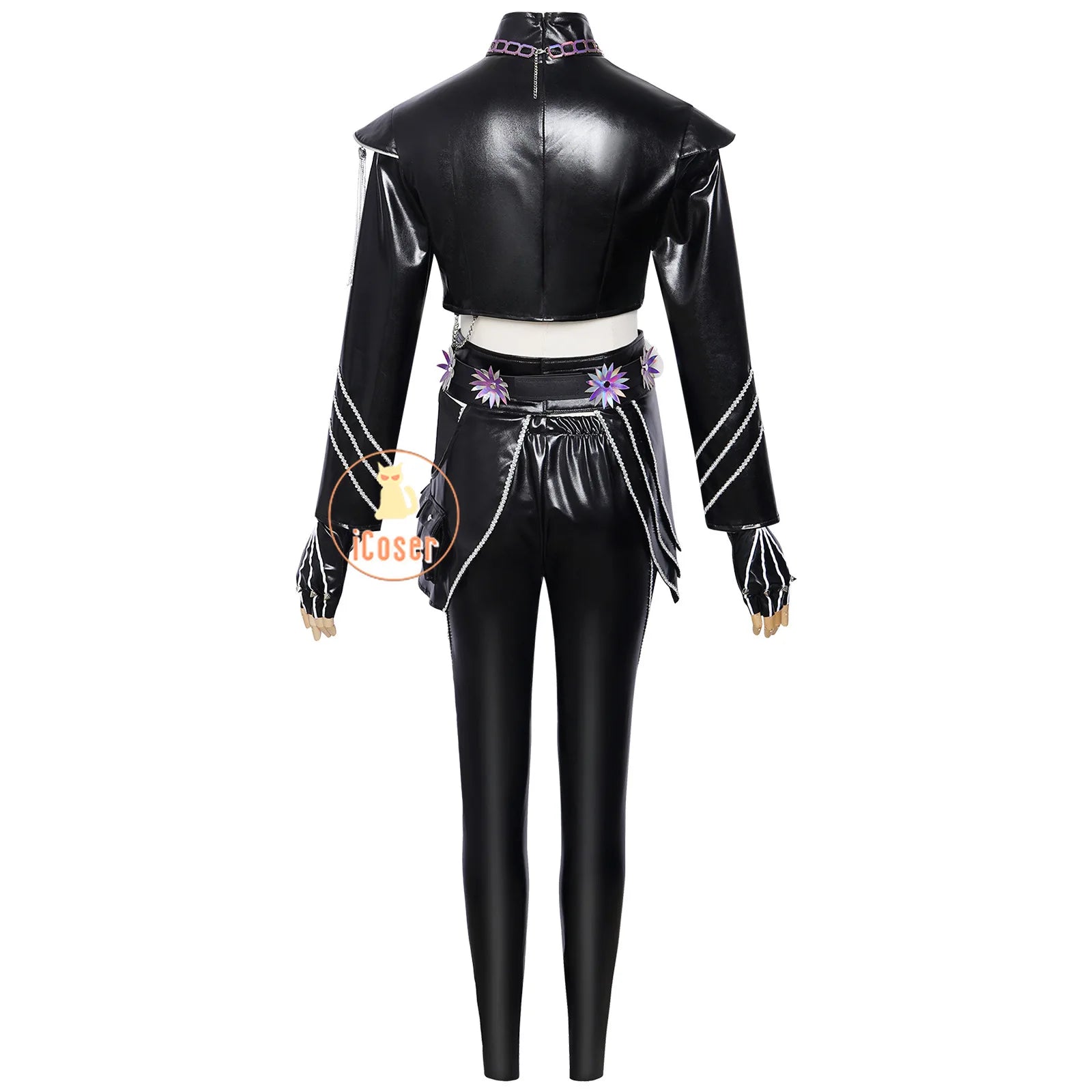 KPop Demon Hunters Rumi Cosplay Costume Black Leather Combat Uniform Necklace Gothic Punk Huntrix Halloween Women Girls iCoser