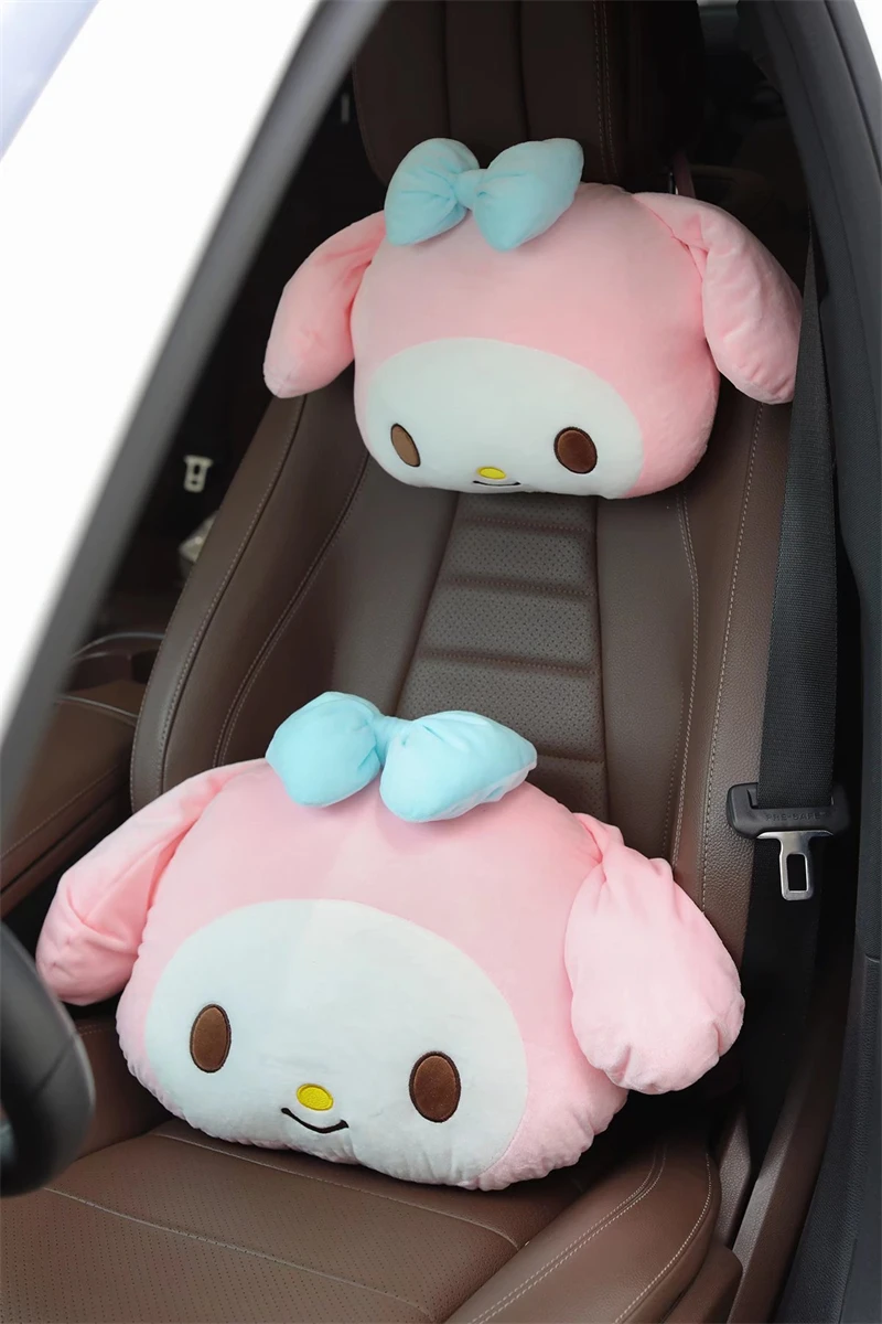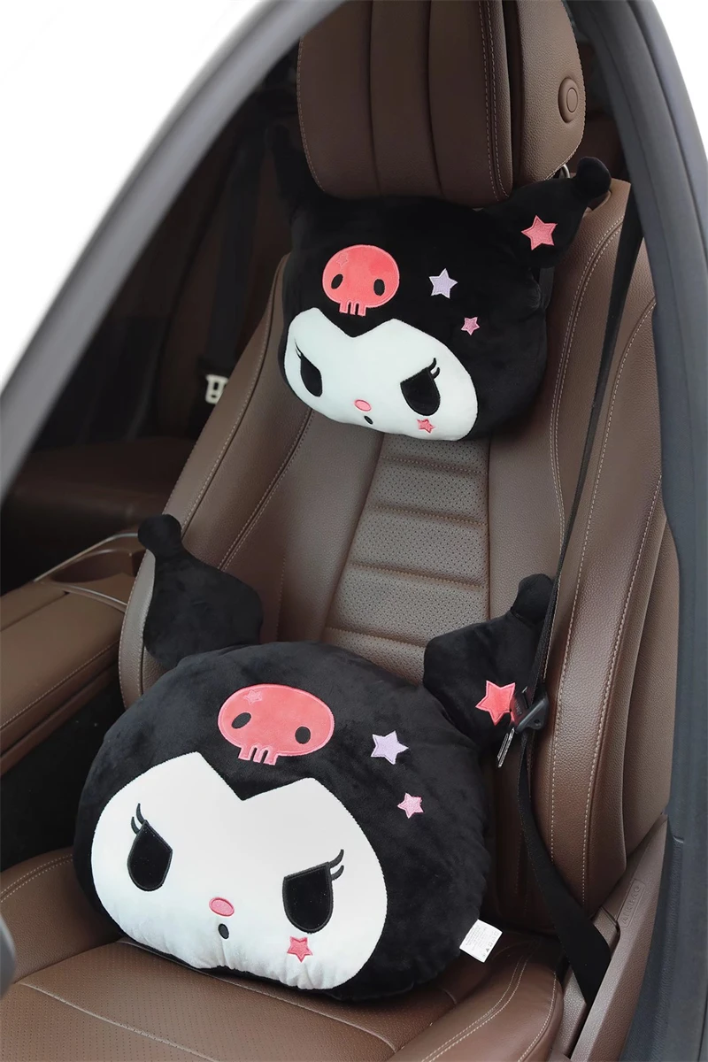Kuromi My Melody Pillow Stuffed Anime Kuromi Car Headrest Safety Seat Belt Cover Cushion Cartoon Car Decoration Girl Gifts