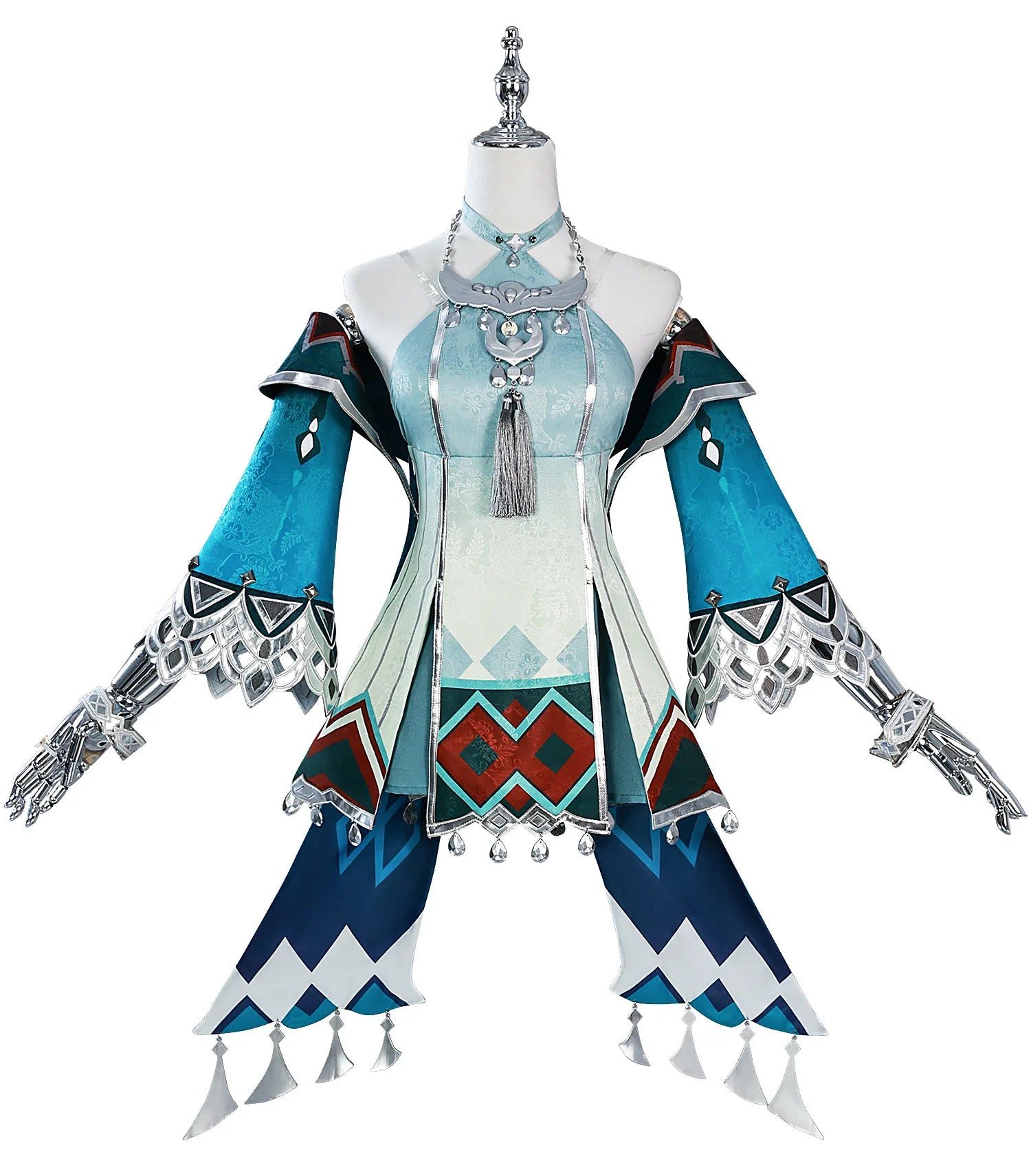 Lan Yan Cosplay Costume Wig Dress Genshin Impact Headwear Liyue Spring Woven From Jade Halloween Party for Women Girls Accessory