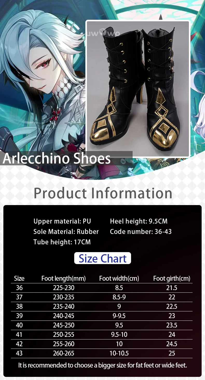 LAST BATCH UWOWO Game Genshin Impact Cosplay Fatui Harbinger The Knave Arlecchino Costume Shoes Boots