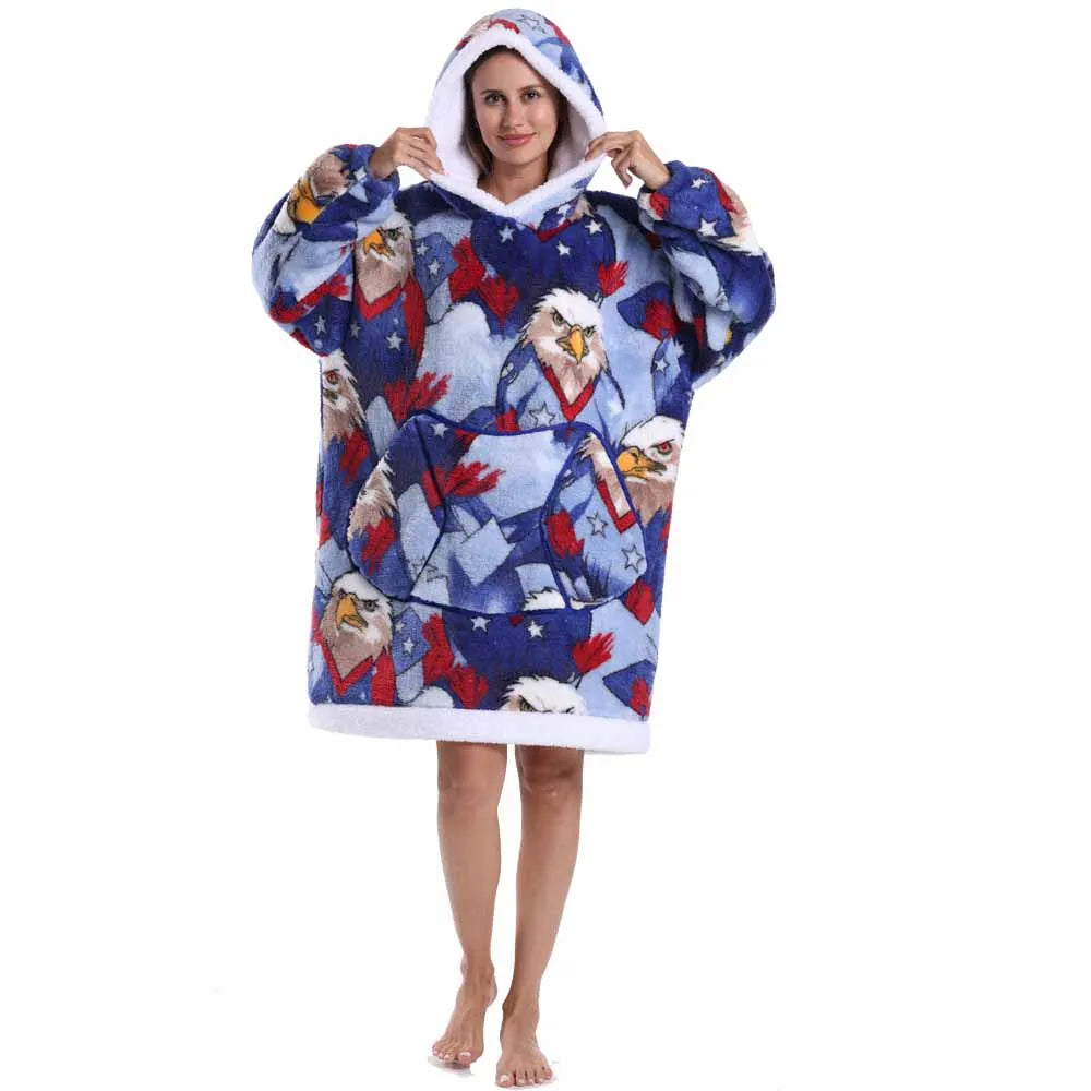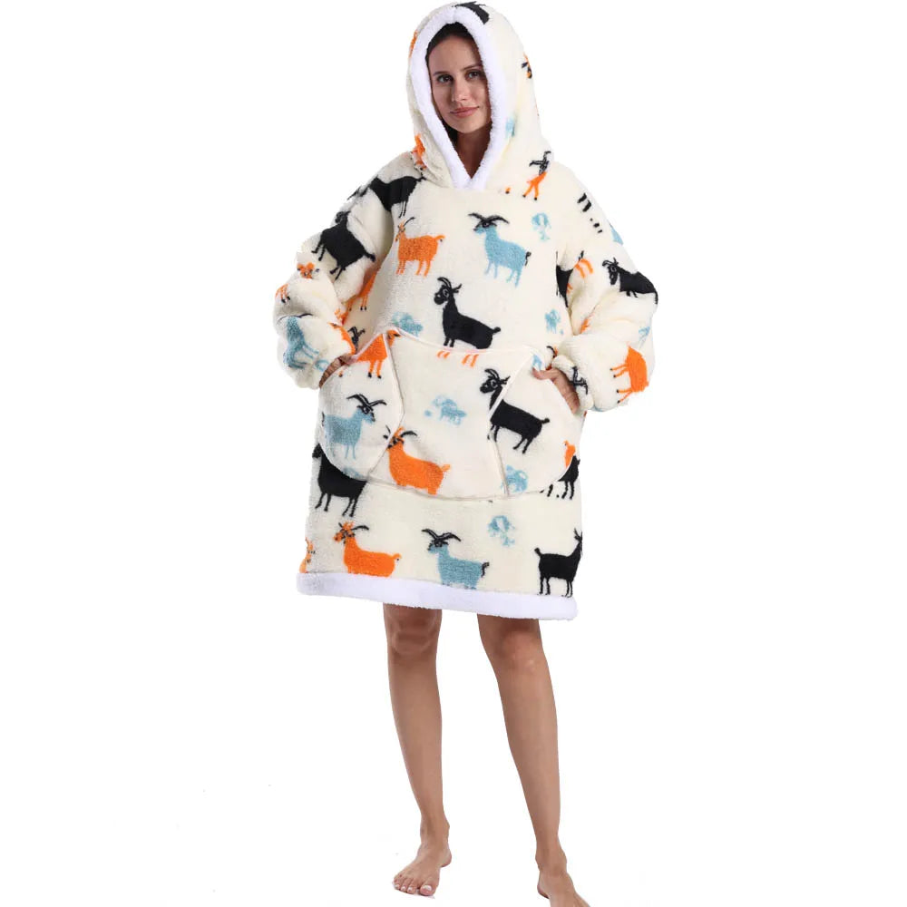 Leopard Winter Women Thicken Warm Hoodie Blanket Pink Blue Oversize Large Pocket Couple Loose Sweatshirts Mens Graphic Hoodies