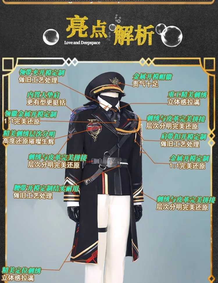 Love and Deepspace Heroines Cosplay Costume Wig Farspace Colonel Female Uniform Cap Caleb Halloween Party Women Carnival Outfit