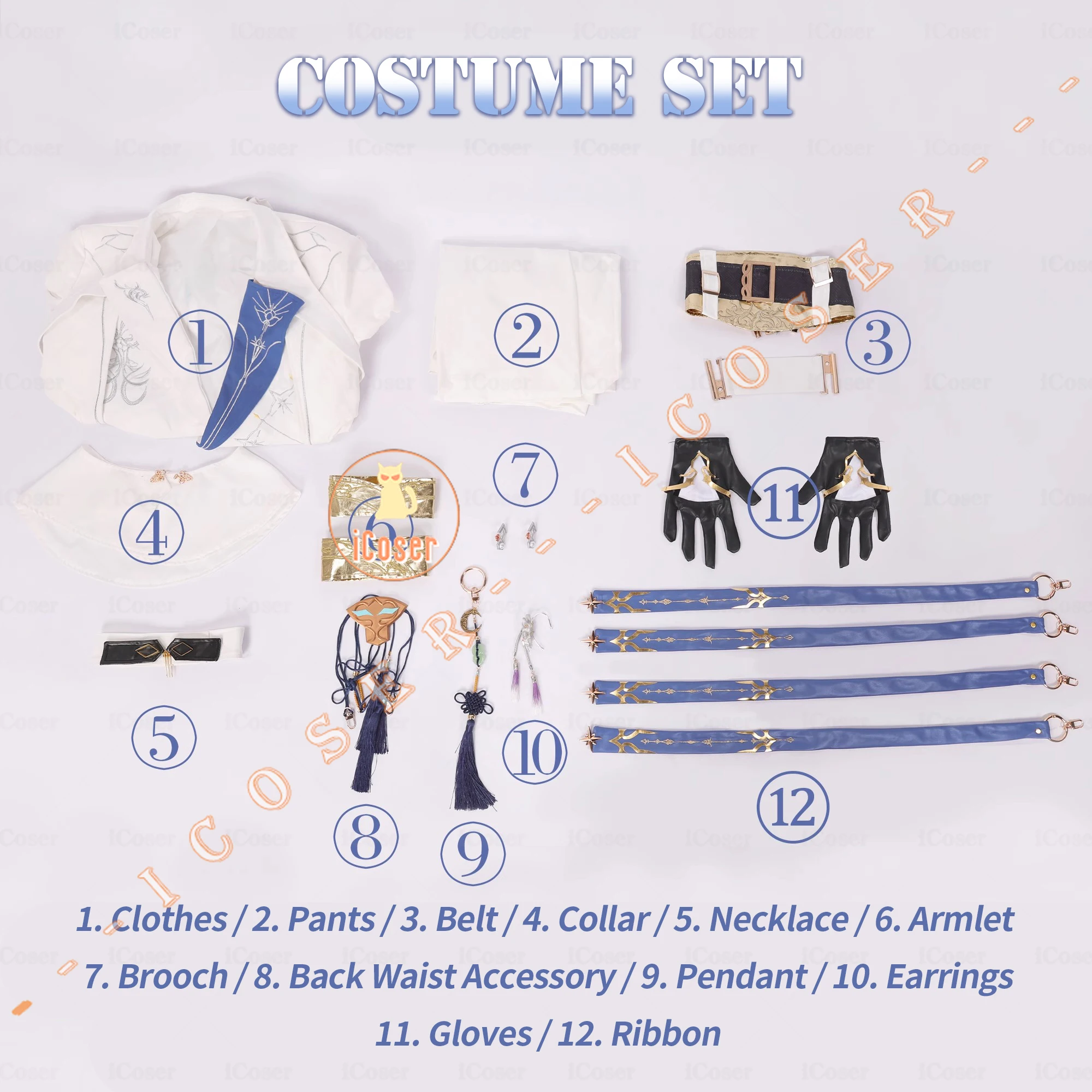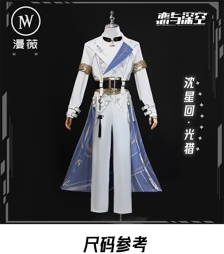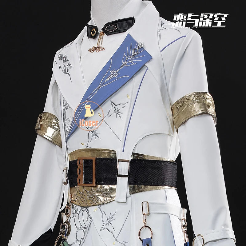 Love and Deepspace Xavier Lumiere Cosplay Costume Wig Shimmering Moonlight Uniform Earrings Halloween Party Women Men Carnival