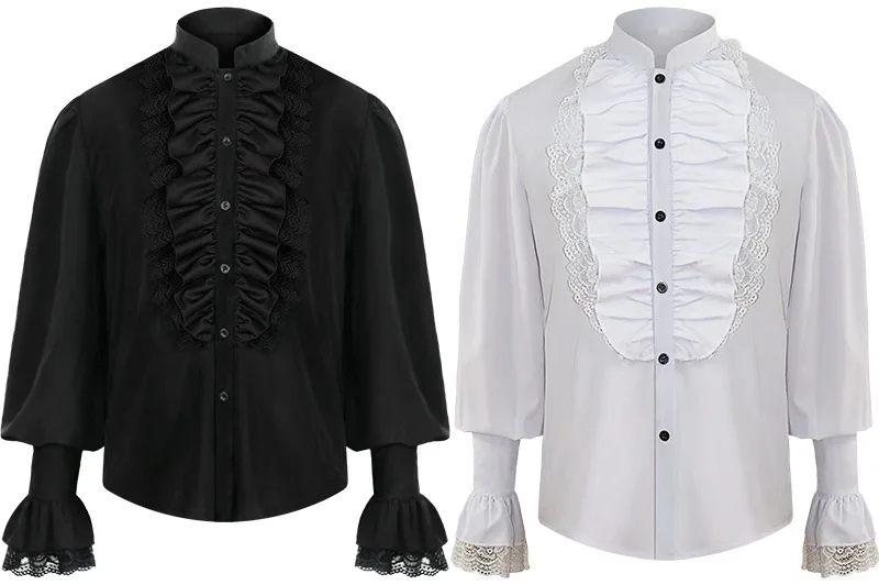 Men Medieval Vintage Prince Costume Pirate Cosplay Shirt Trench Renaissance Victorian Edwardian Men Viking Warrior Knight Outfit