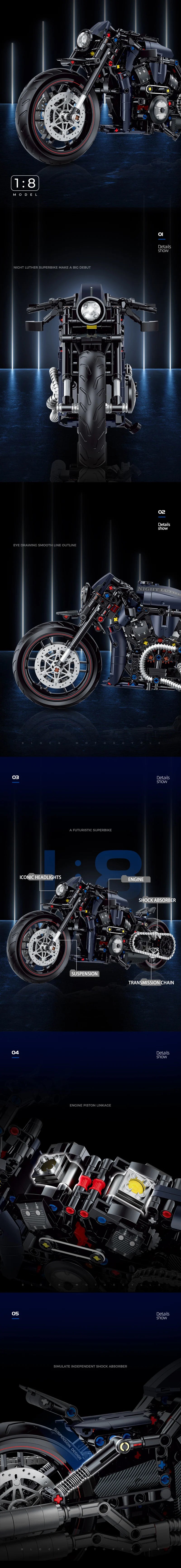 New 1:8 Night Racer Motorbike Building Blocks Sets MOC Bricks Motorcycle Model Christmas Gifts for Boys Kids Children 500+pcs