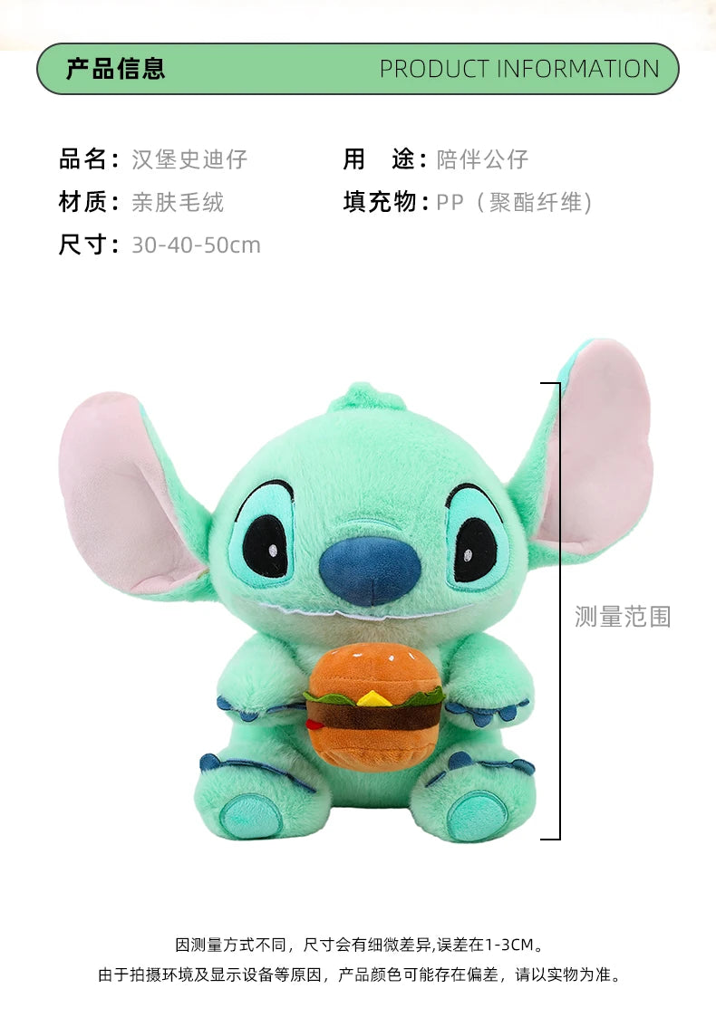 New 30/50cm Disney Kawaii Burger Stitch Plush Toy Cartoon Anime Needle Cute Sleeping Pillow Plush Doll Girl Holiday Gift