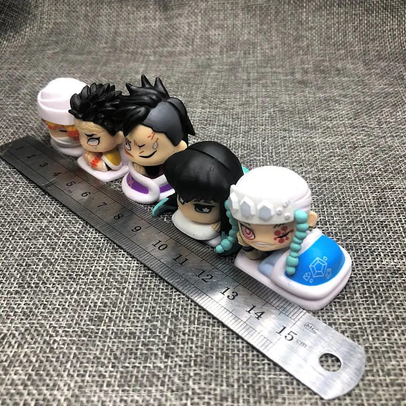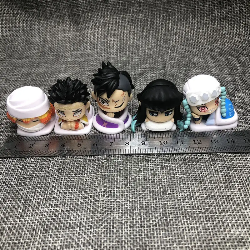 New 5pcs/set Anime Demon Slayer kawaii Q Version sleeping position Action Figure PVC Model doll Toy Rement Desk Decor Gifts