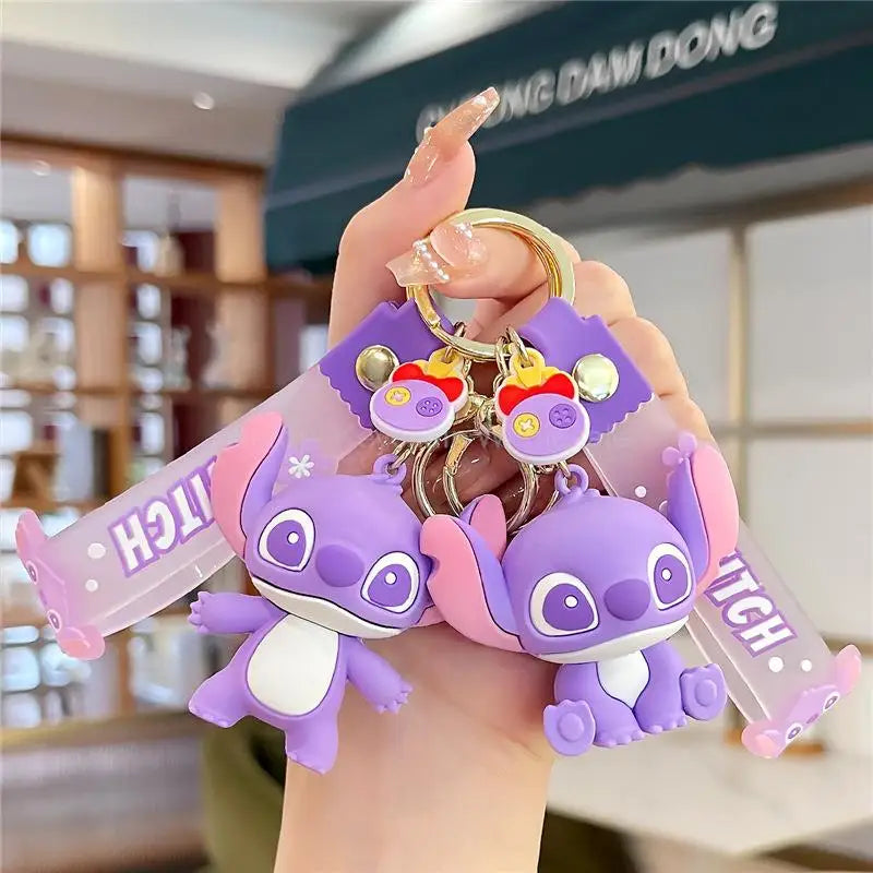 New Anime Disney Keychain Mickey Mouse Minnie Lilo & Stitch Cartoon Keyring Key Chain Car Pendant Kids Toys Gift Wholesale