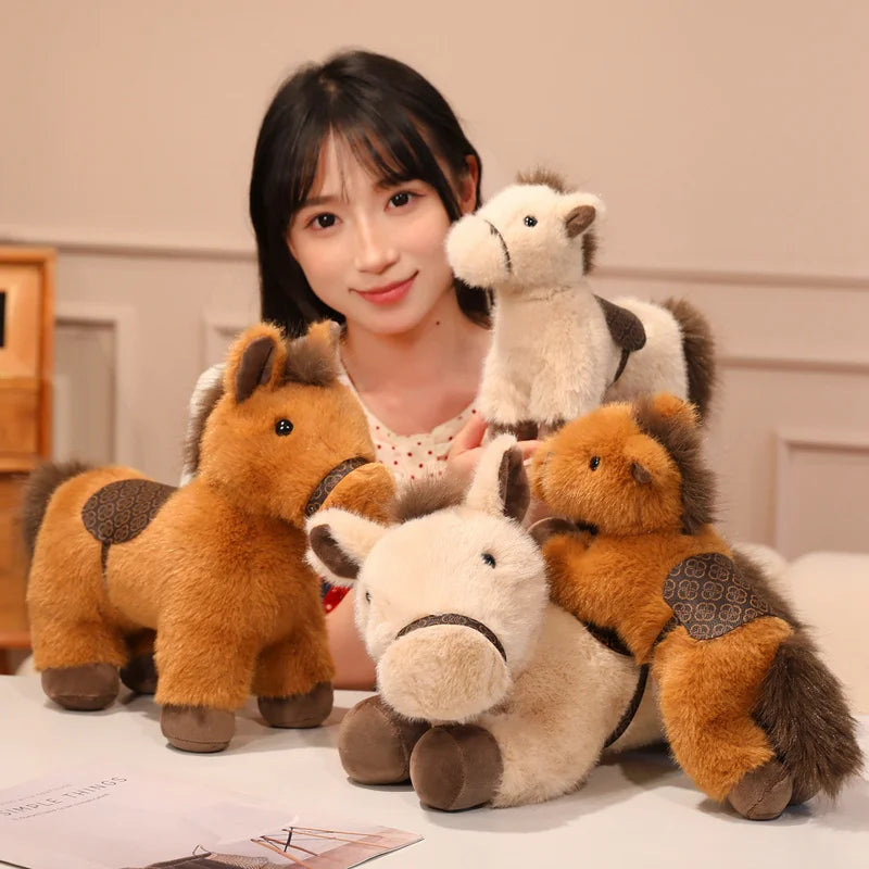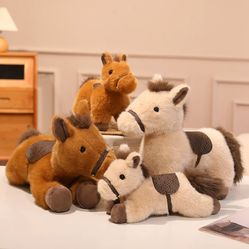 New Arrival Cute Saddle Pony Plushies Stuffed Animal Brown Horse Racehorse Soft Toys Birthday Xmas New Year Gift