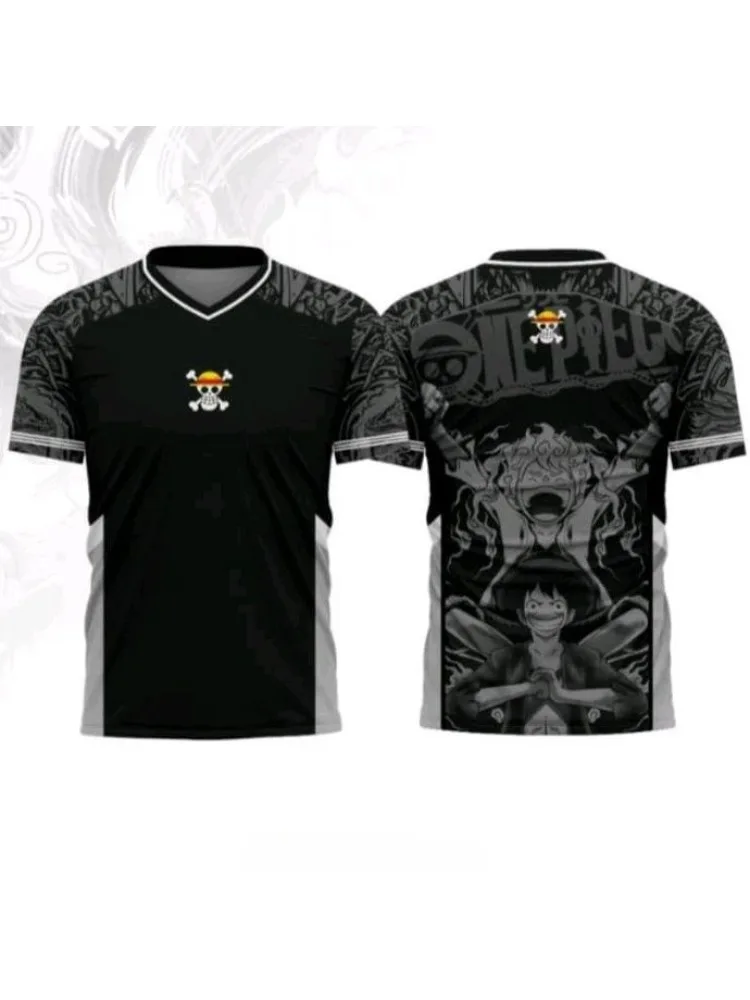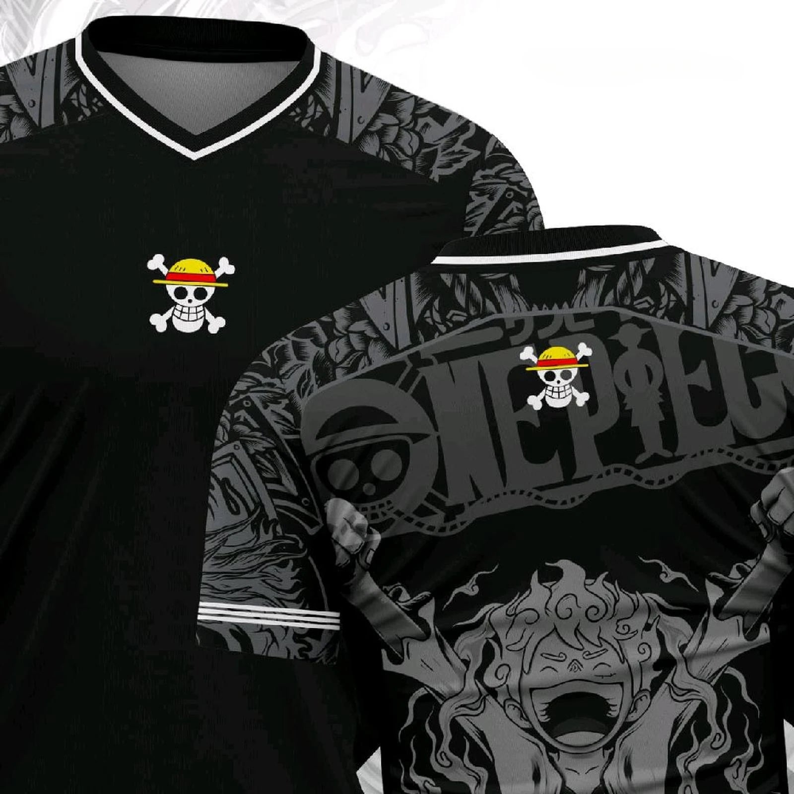 New Jersey One Piece Luffy Anime Y2k Korean Style Kpop Baseball Hockey T-shirt Fashion Streetwear Anime Daily Unisex Tops Tees