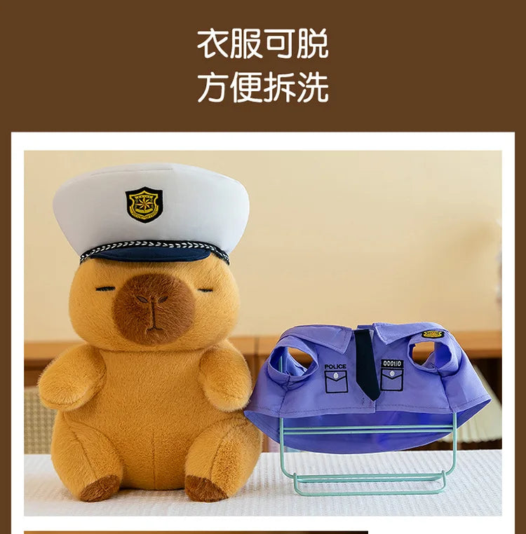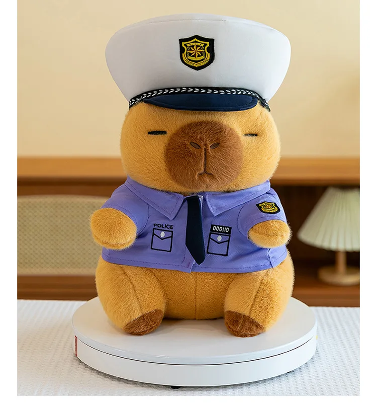New Kawaii 50cm Plush Toy Capybara Police Stuffed Animal Pillow Cute Plush Doll for Kids Birthday Christmas Gift
