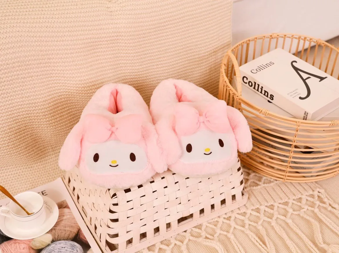 New Sanrio Kuromi Melody Hellokitty Bag Root Cotton Slippers Winter Indoor Warm Cotton Shoes Adult Plush Cotton Slippers