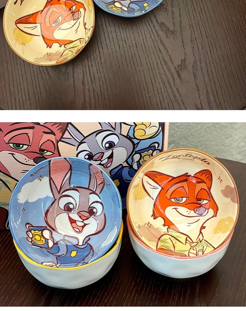 New Zootopia Disney Judith Nick 4 Cute Cartoon Ceramic Rice Bowl Home Festival Gift High Beauty Tableware