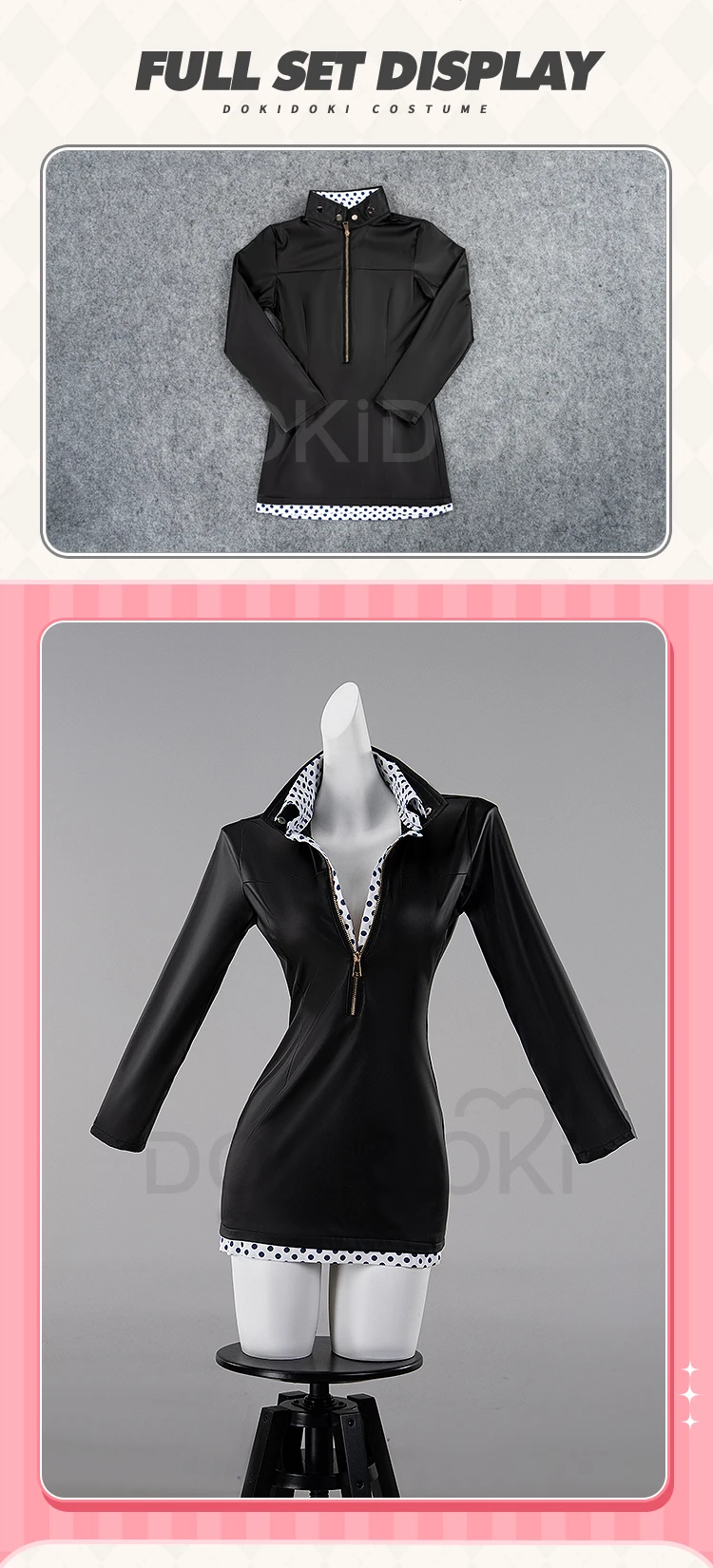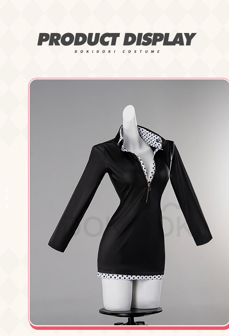 Nicoo Robinn Cosplay Costume Anime Cosplay DokiDoki-N Miss Allsundayy Women Sexy Blue Dots Black Dress Nicoo Robinn Cosplay