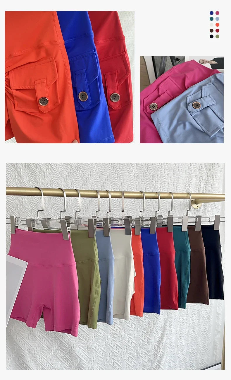 Nude High Waist Peach Butt Sport With Pocket Yoga Shorts Leggings Quick Drying Gym Training Cycling Outdoor sports Shorts