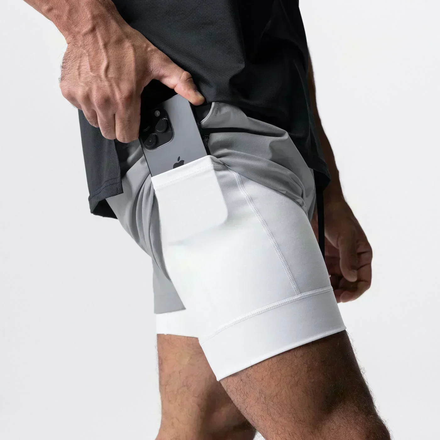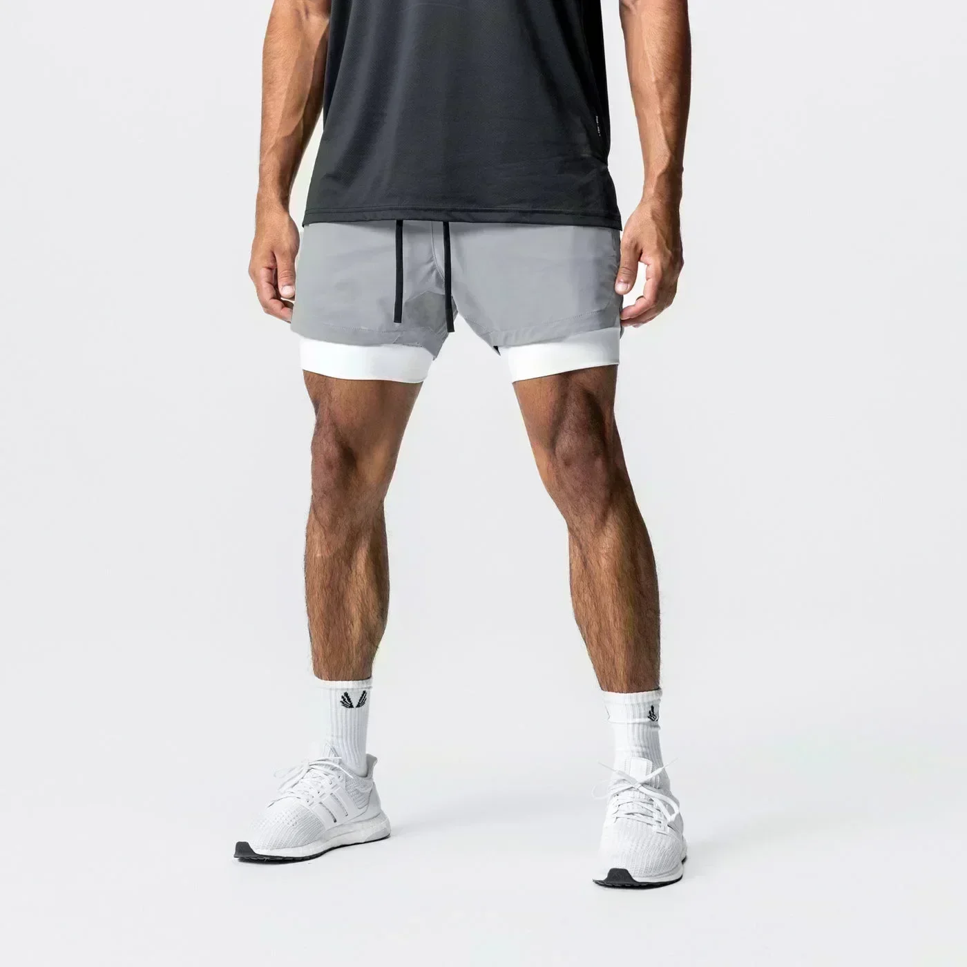 Graphic 2 in 1 Workout Running Shorts for Men Gym Athletic Performance Shorts with Phone Pocket Towel Loop Activewear Outfits
