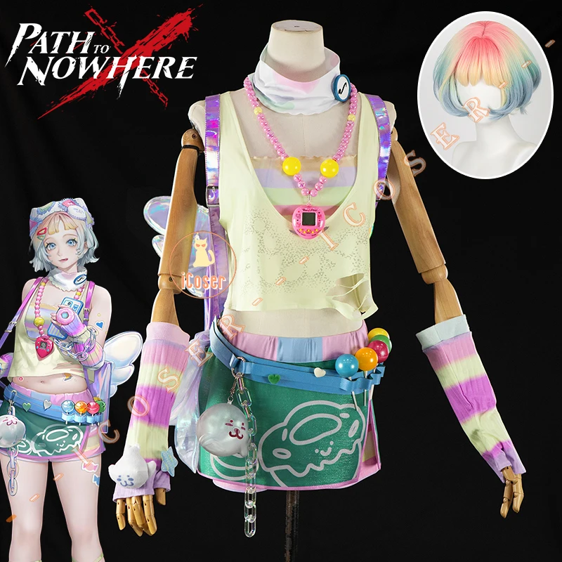 Path To Nowhere Poffy Cosplay Costume Wig Uniform Outfit Shorts Backpack Hat Necklace Halloween for Women Girls Festival Party