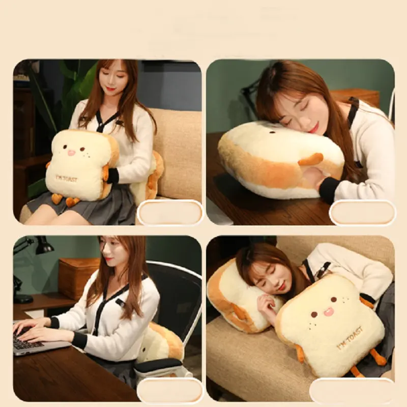 Plush Bread Pillow Kawaii Food Pig Rabbit Fox Toast Soft Doll Hand Warmer Home Decoration Cushion Kids Toys Birthday Gift