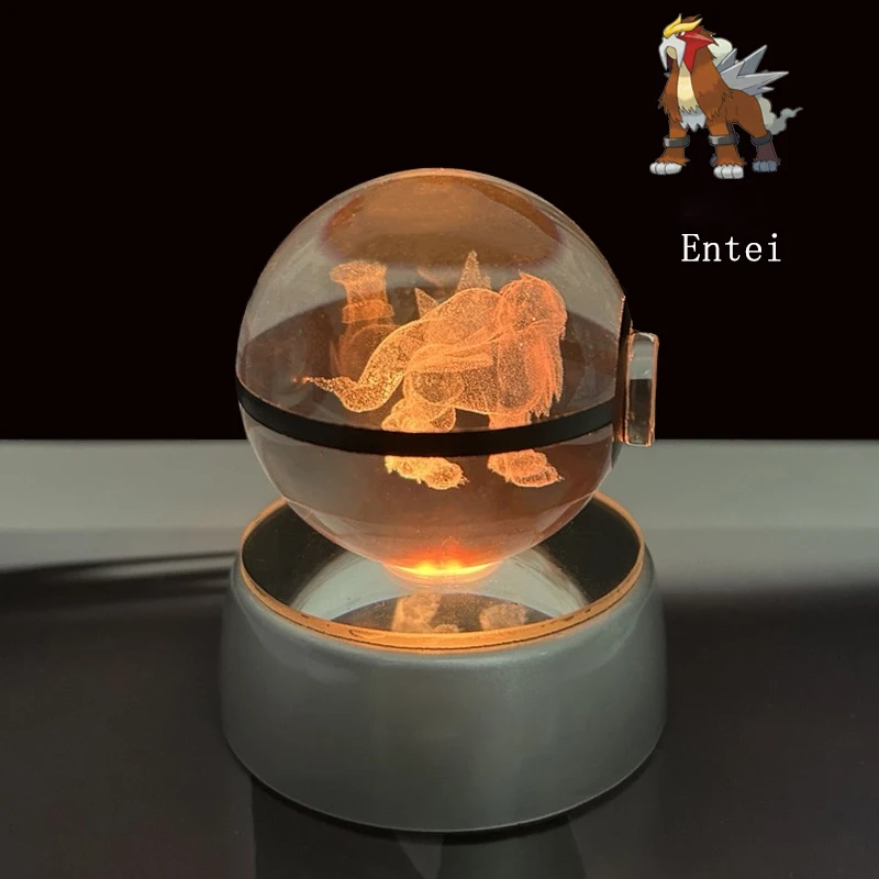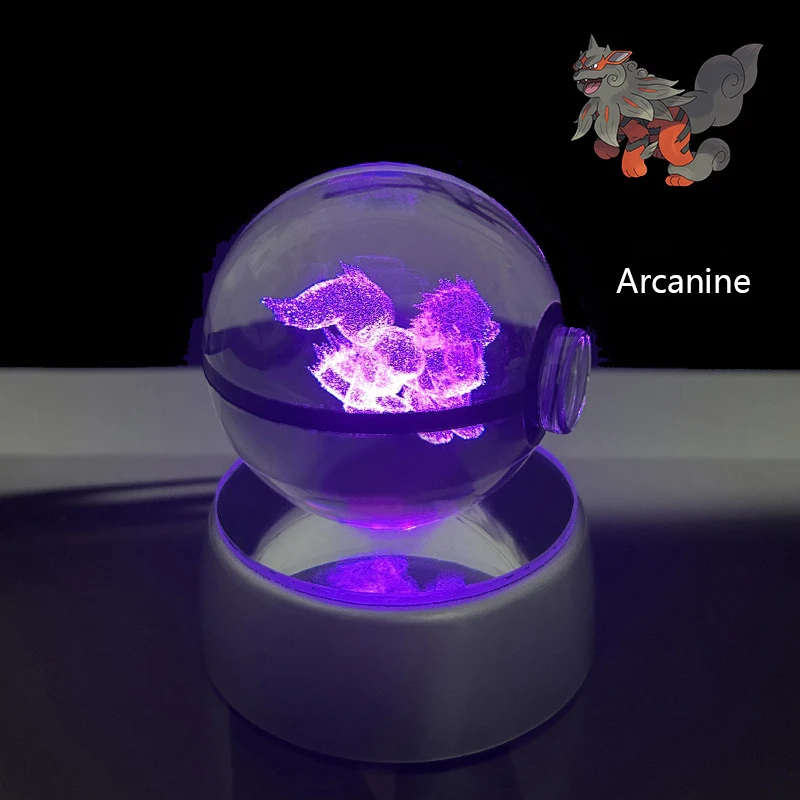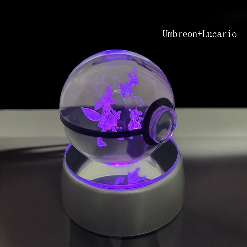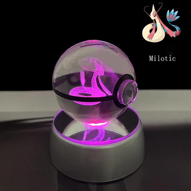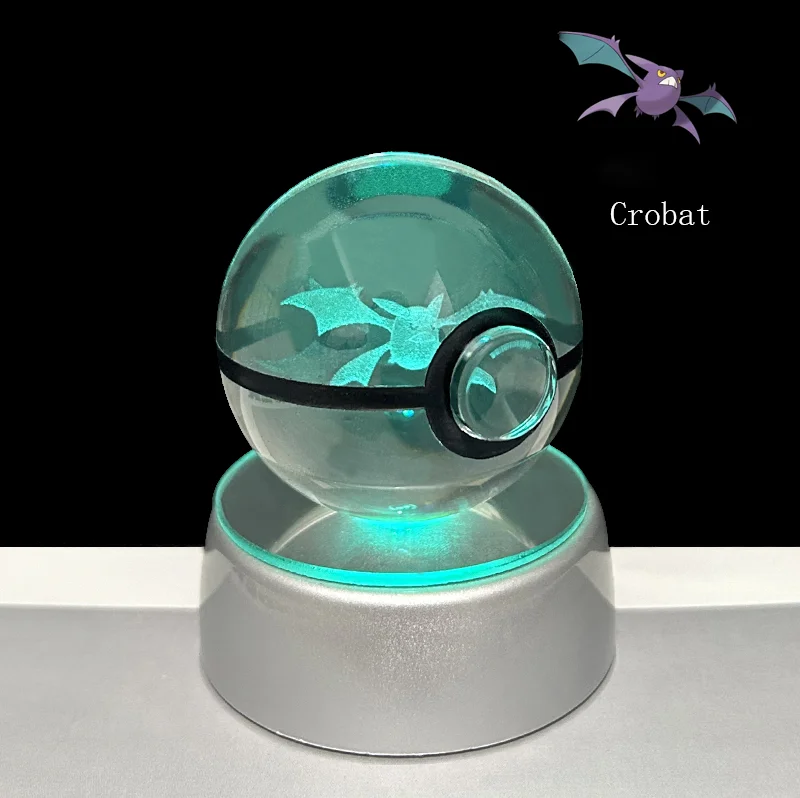 Pokemon 3D Crystal Ball Glastrier Charizard Eternatus Froakie Anime Game Pokeball Led Night Light Base Birthday Gift Home Decora