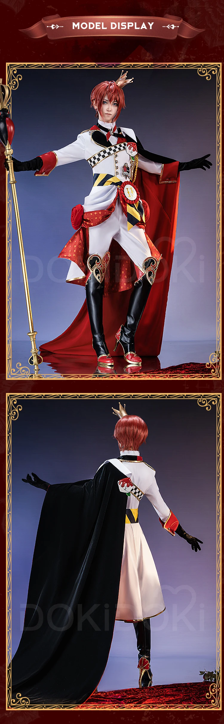 Riddle Cosplay Costume Anime【S-3XL】DokiDoki-SR Men Red King Uniform Halloween Riddle Rosehearts Cosplay Crown Plus Size