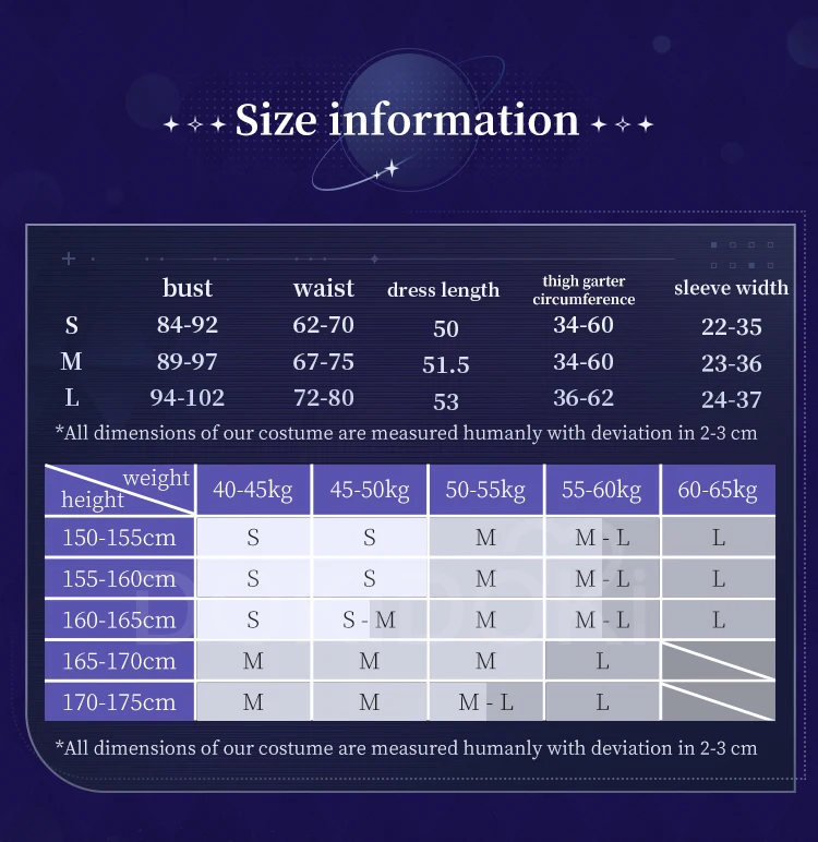 Asian size-Please read the size chart carefully. (◕ˇ∀ˇ◕)Welcome contact us for help about size choosing with your height ,weight ,waist ,bust,hip measurement.