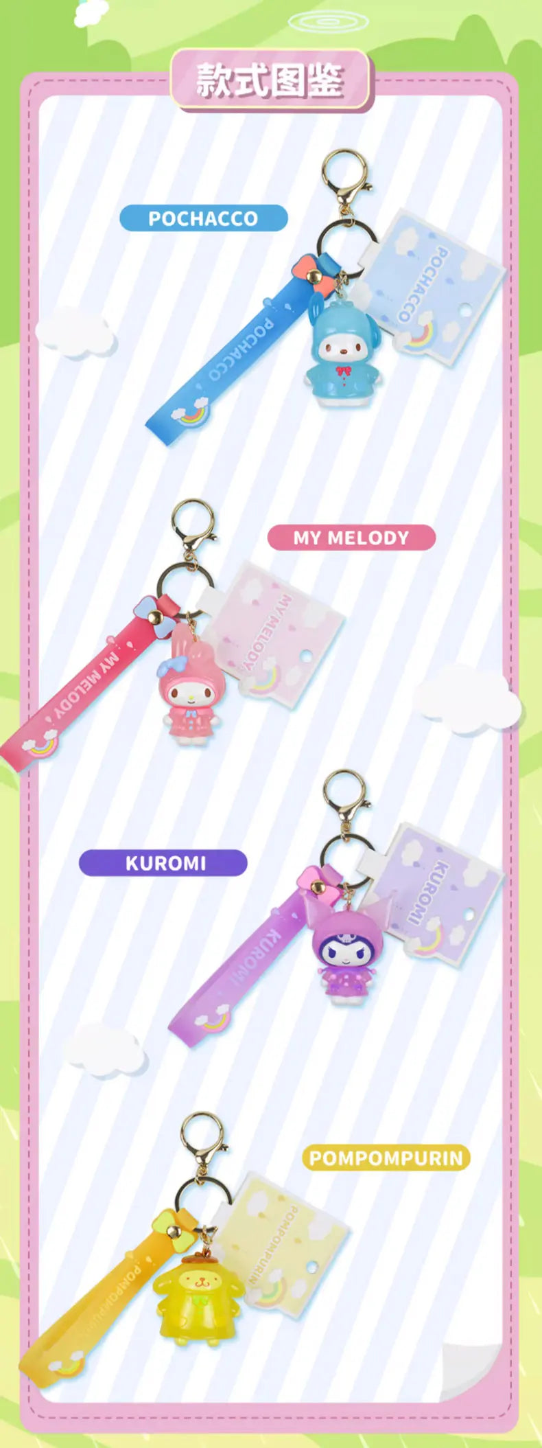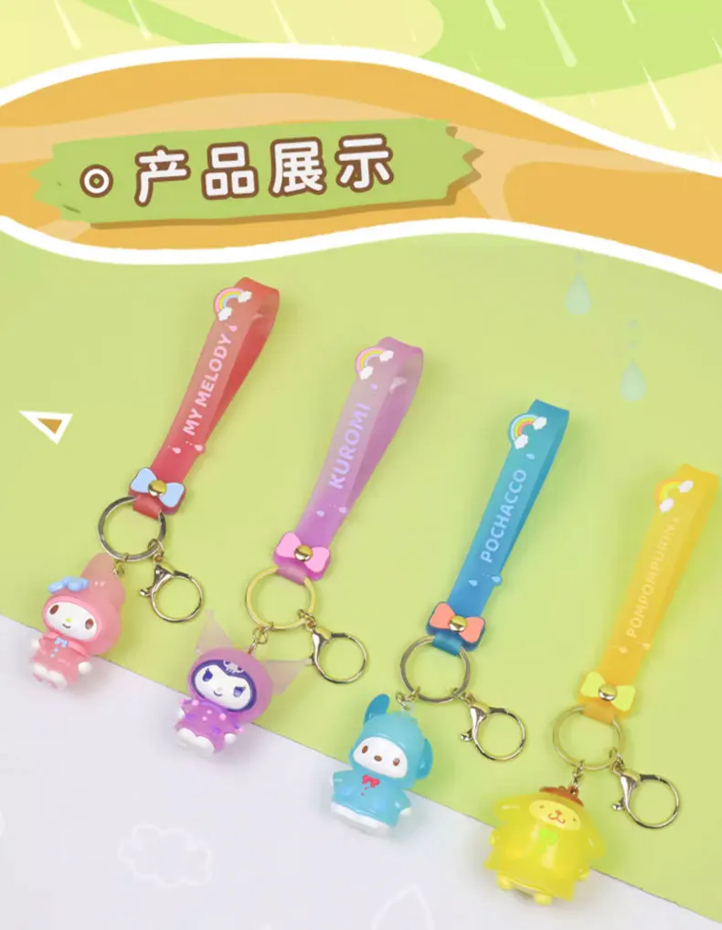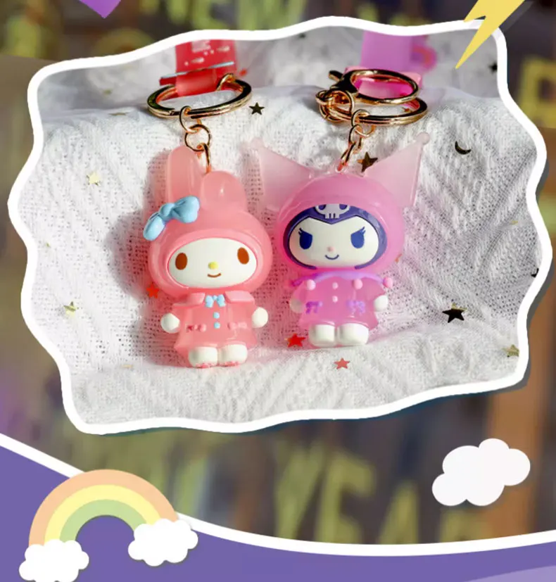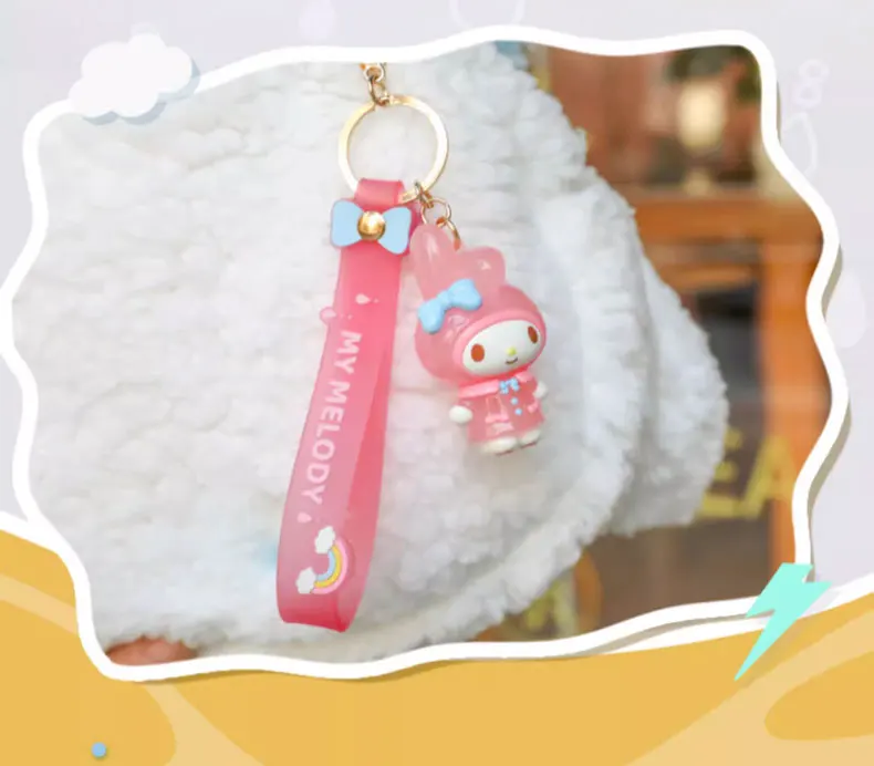 Sanrio Kuromi Pompompurin Mymelody Pochacco Hello Kitty Figure Pendant Keychain Holder Keychain Car Keyring Kids Birthday Gift