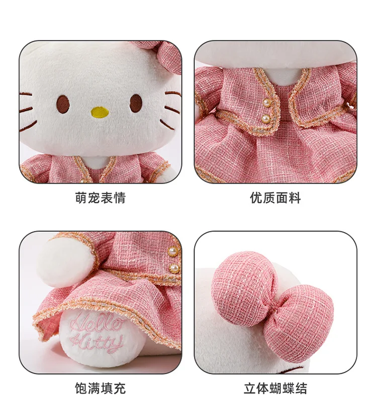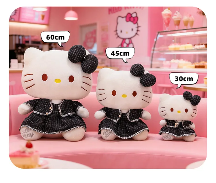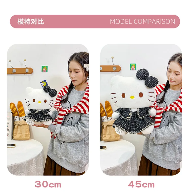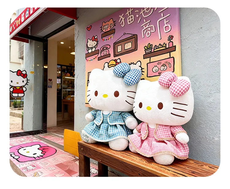 Sanrio Plush Cat Stuffed Animal Doll Large Checkered Skirt Kawaii Pillow Toy for Kids Birthday Christmas Gift for Girls Bedtime