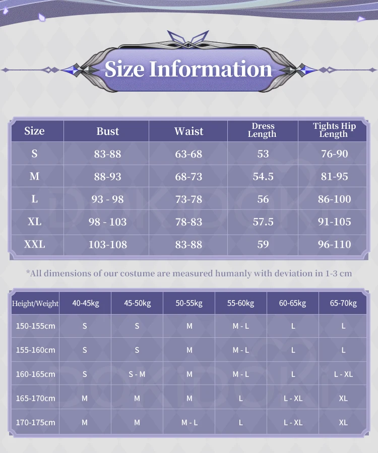 Please read the size chart carefully. (◕ˇ∀ˇ◕)Welcome contact us for help about size choosing with your height ,weight ,waist ,bust,hip measurement.