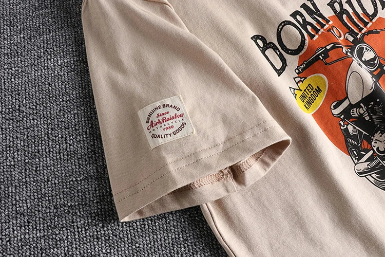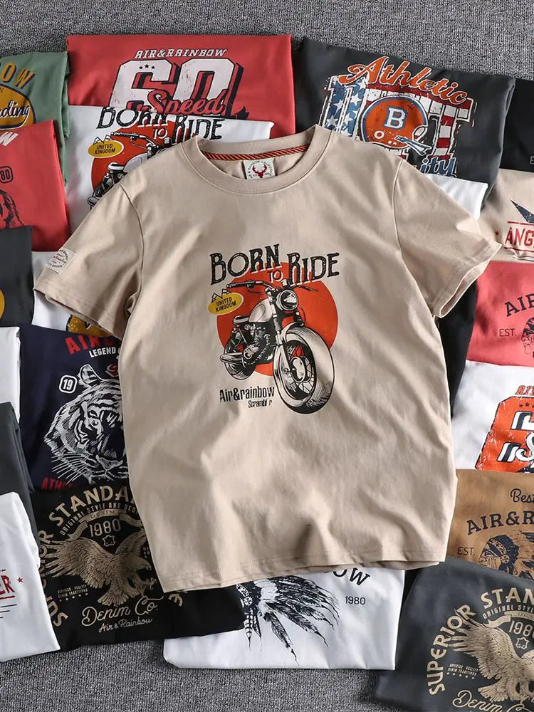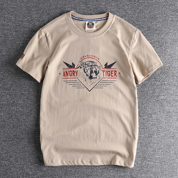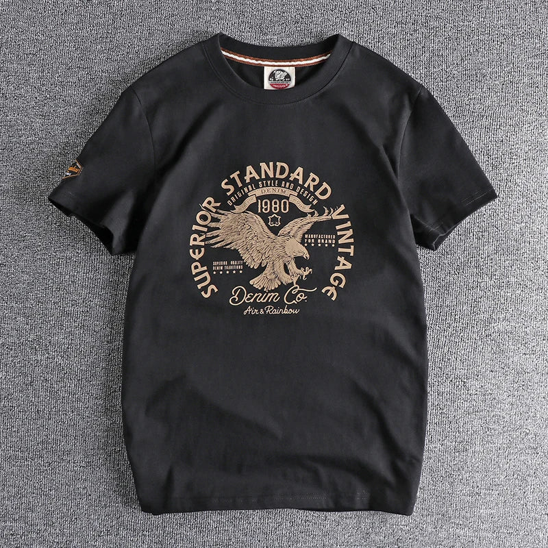 Summer New American Retro Short-sleeved O-neck Eagle Printed T-shirt Men's Fashion Simple 100% Cotton Washed Casual Sport Tops
