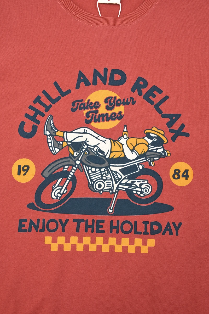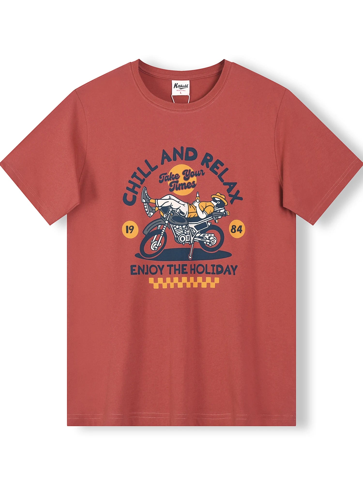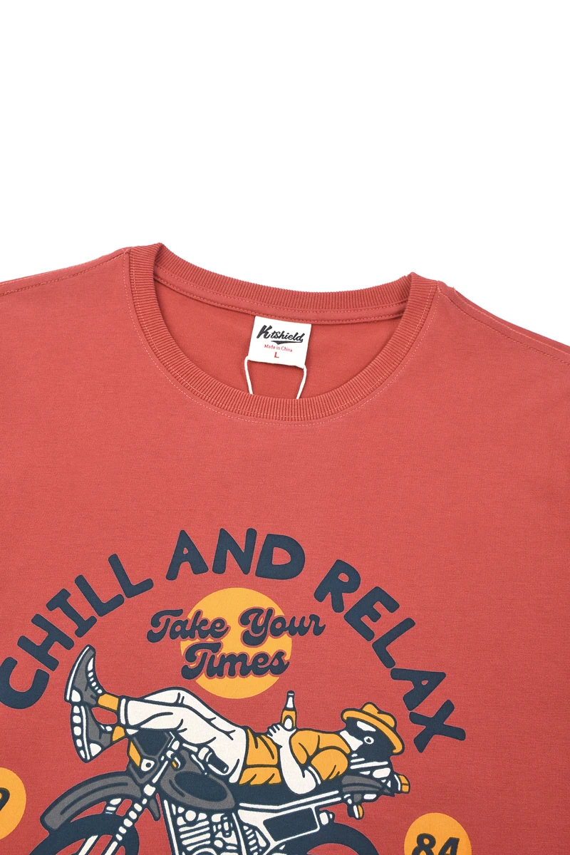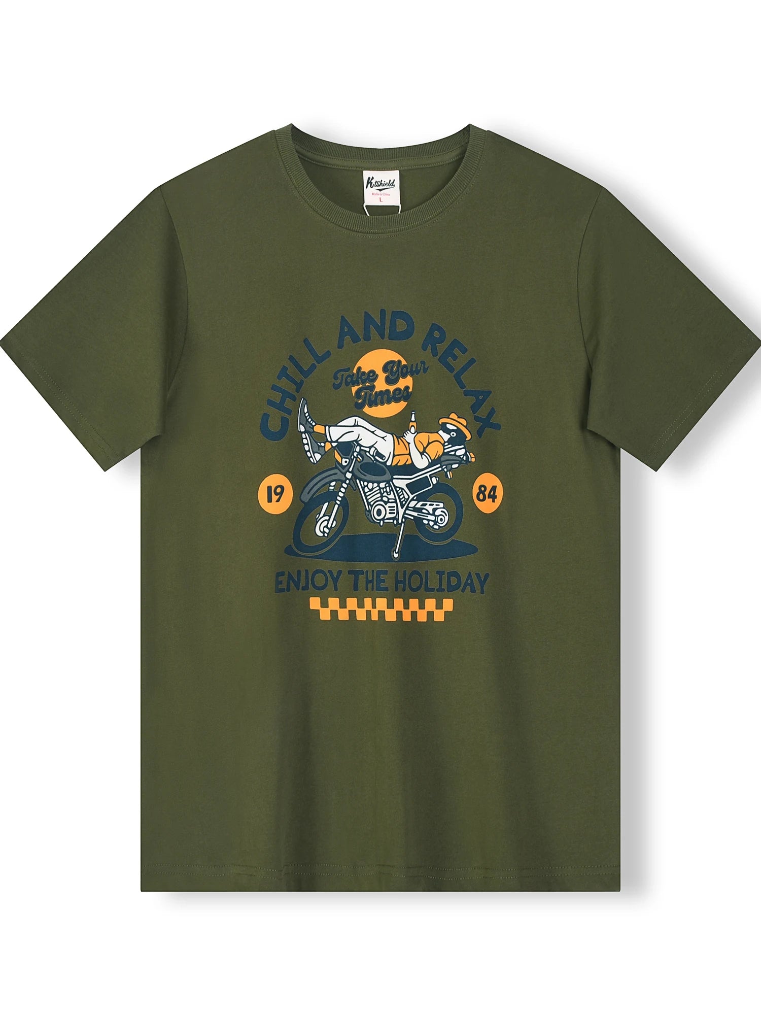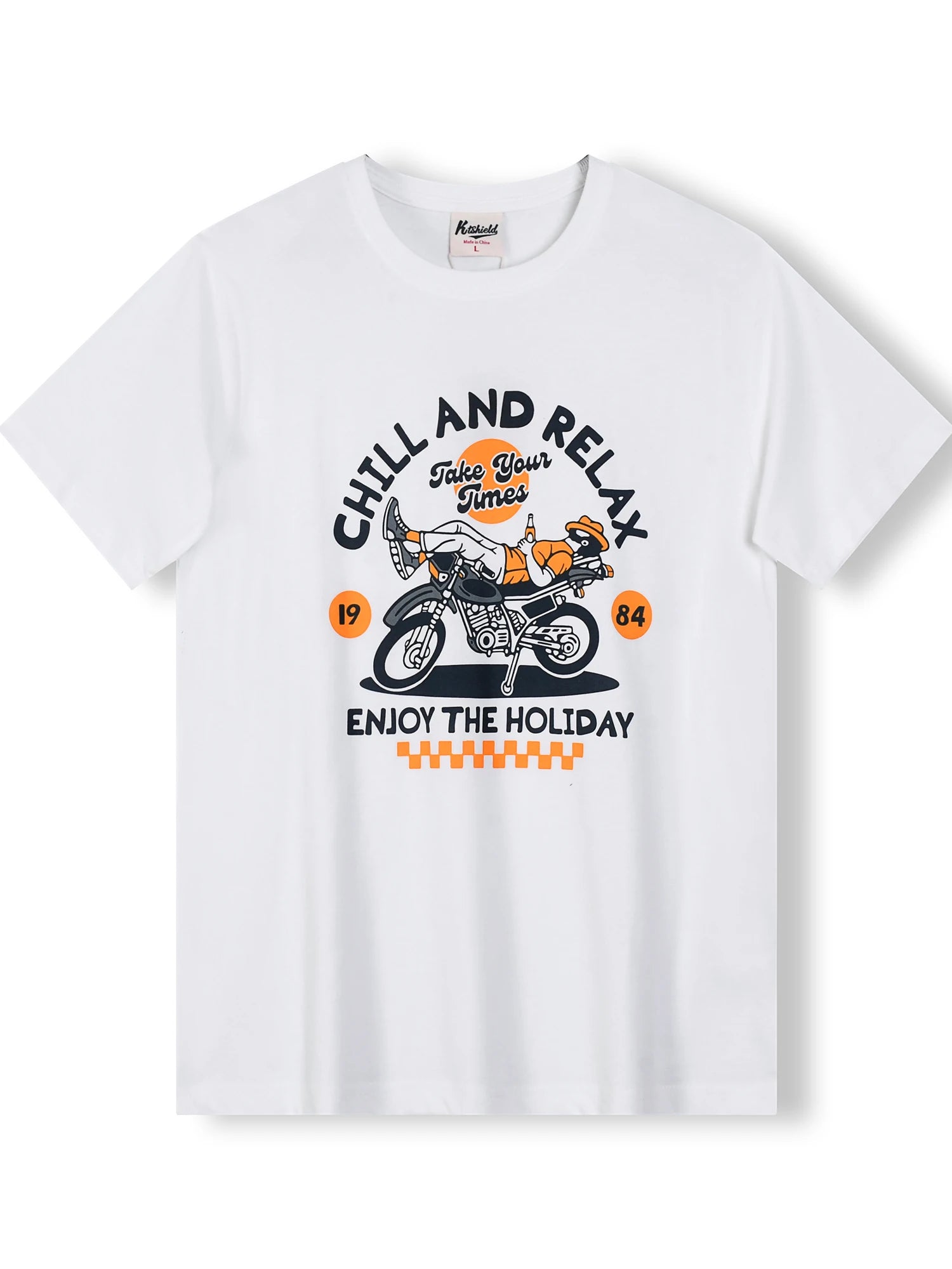 Summer New American Retro Short-sleeved O-neck Motorcycle Printed T-shirt Men's Fashion 100% Cotton Washed Casual Sport Tops